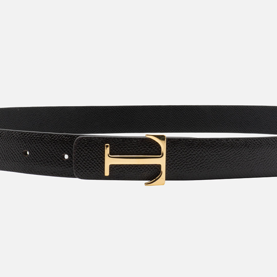 Cintura in pelle di vitello spazzolato Mono, la fibbia riproduce l'emblematica T della Maison Talarico.
