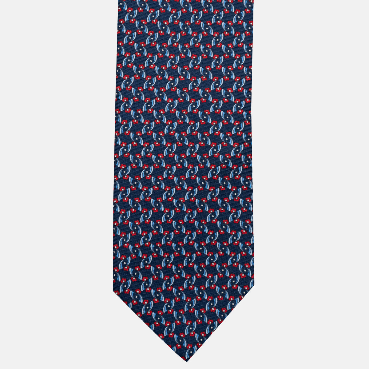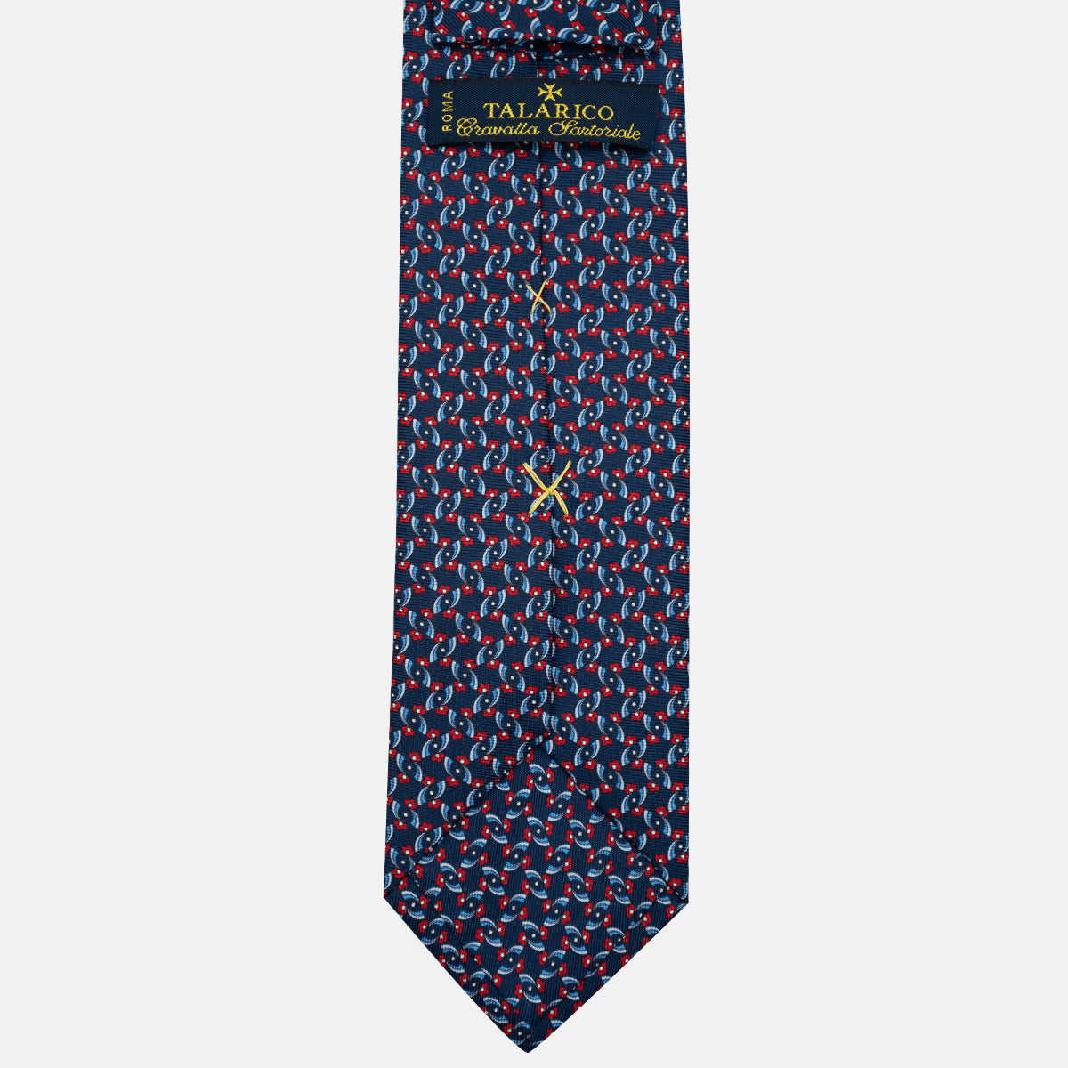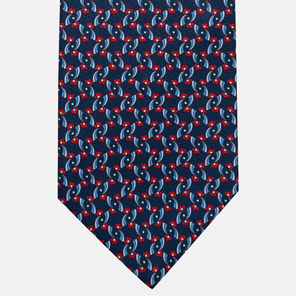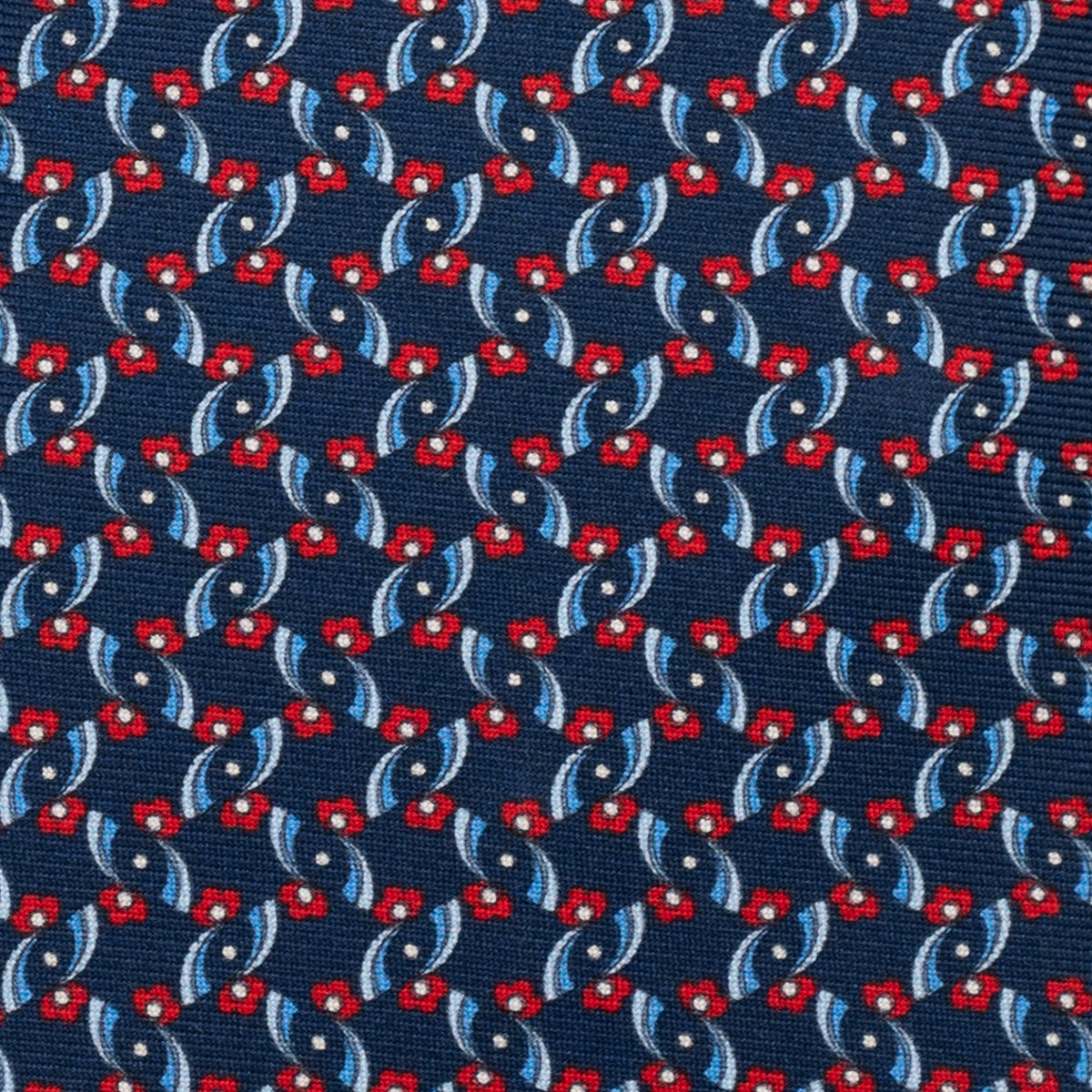 3-Fold Silk Tie, Floral Pattern, Blue and Red - JA056337-3