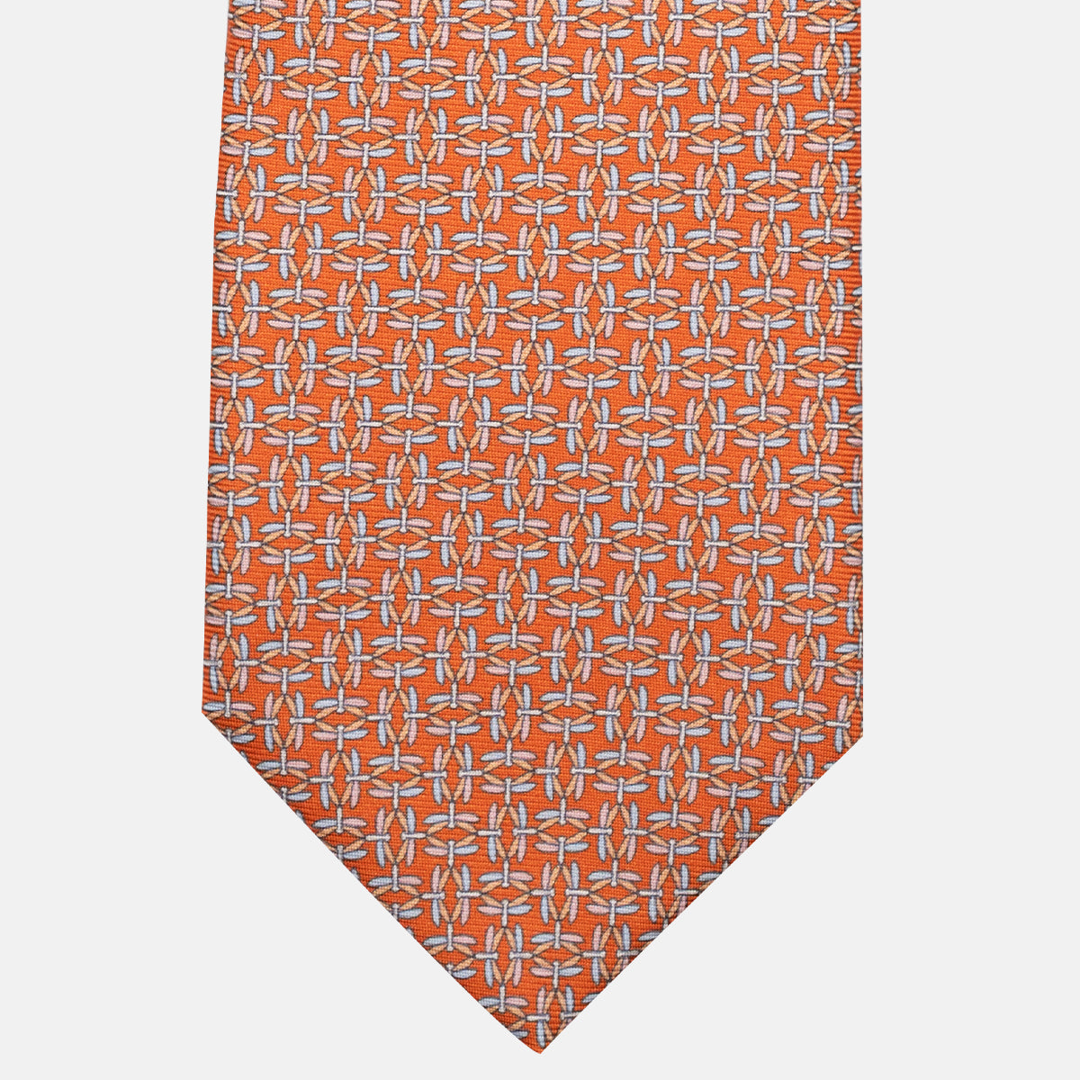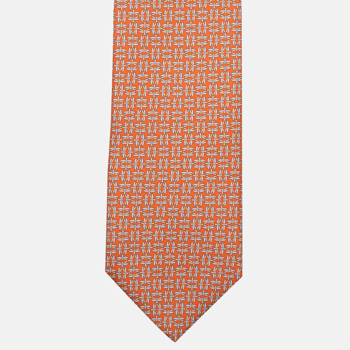 Cravatta 3 pieghe in Seta, Fantasia Geometrica, Arancione - JC056226-5