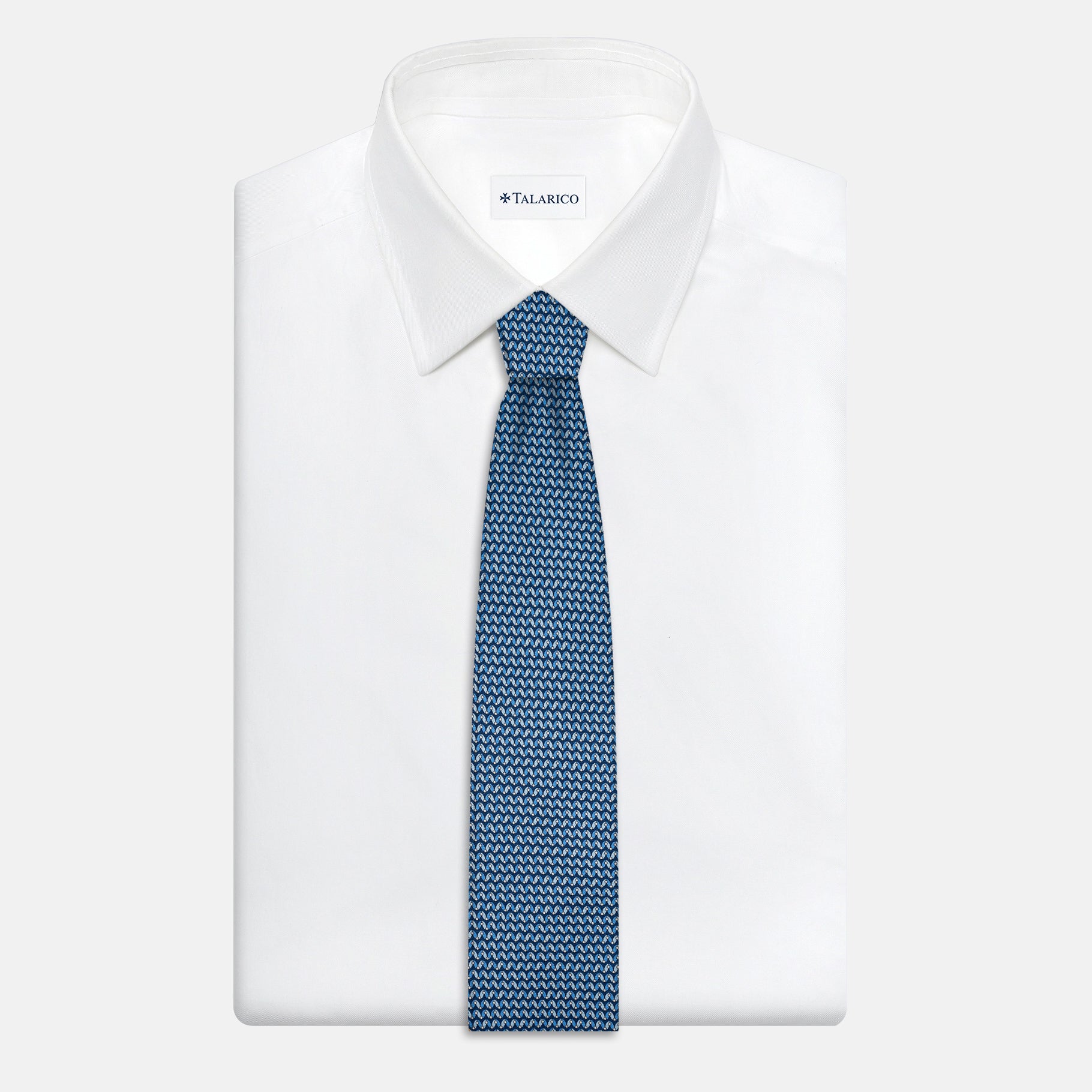 3-Fold Silk Tie, Geometric Pattern, Light Blue - JA056675-7