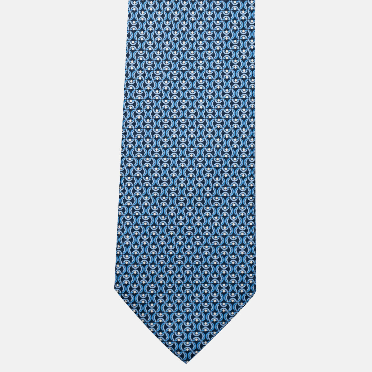 3-Fold Silk Tie, Geometric Pattern, Light Blue - JA056334-5
