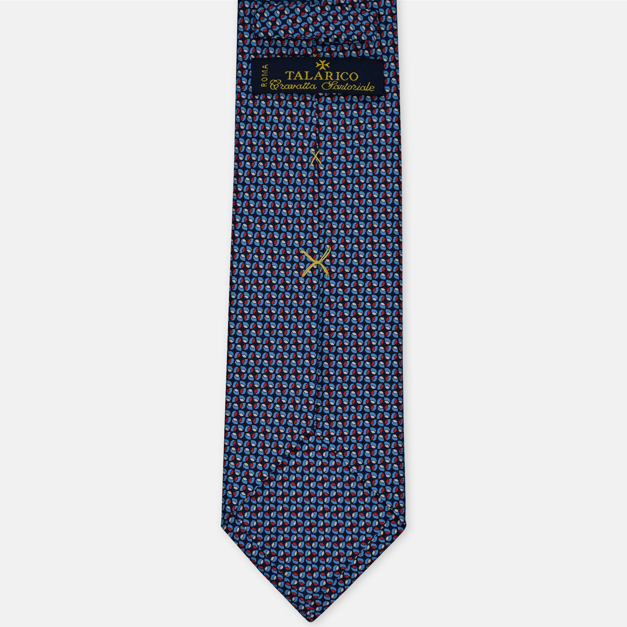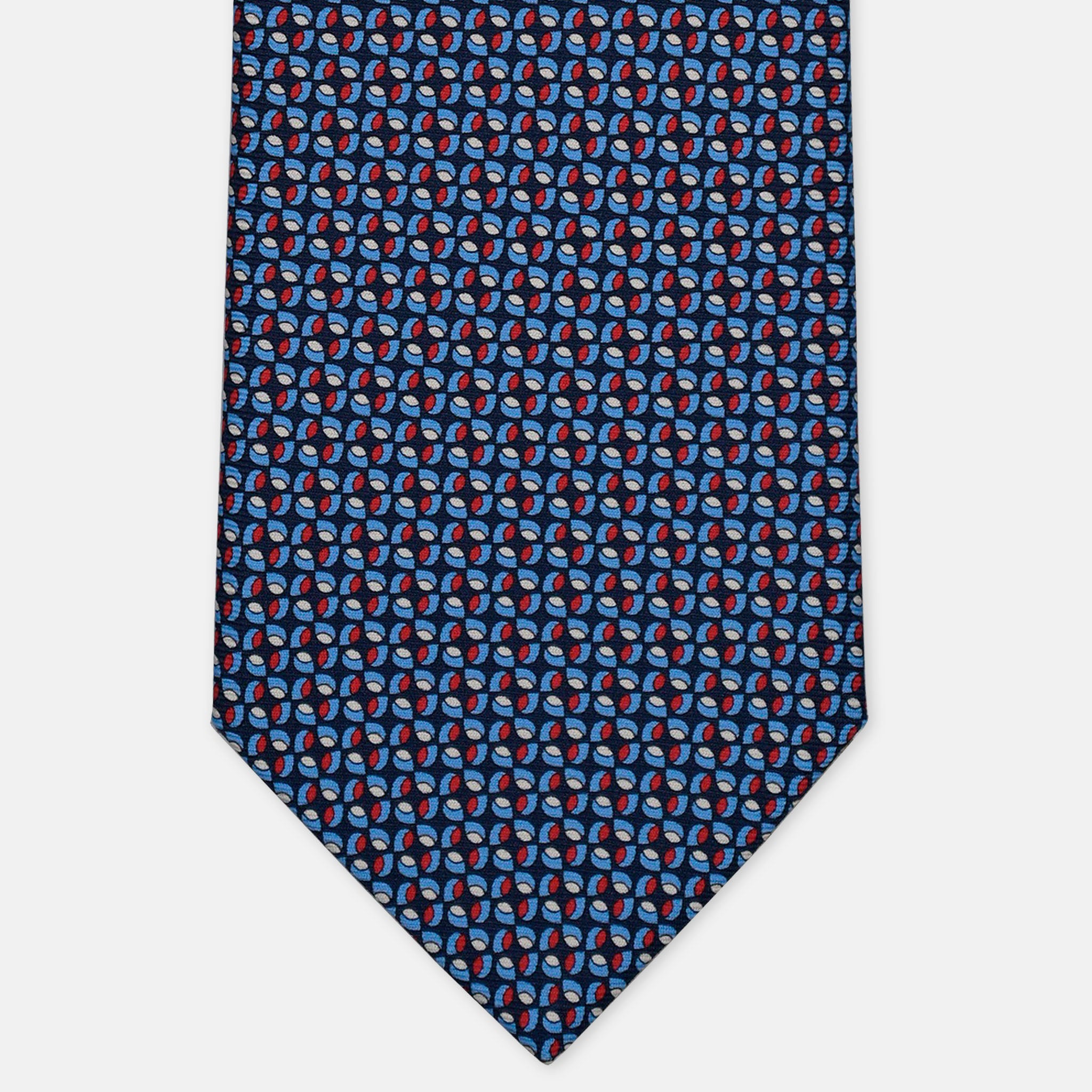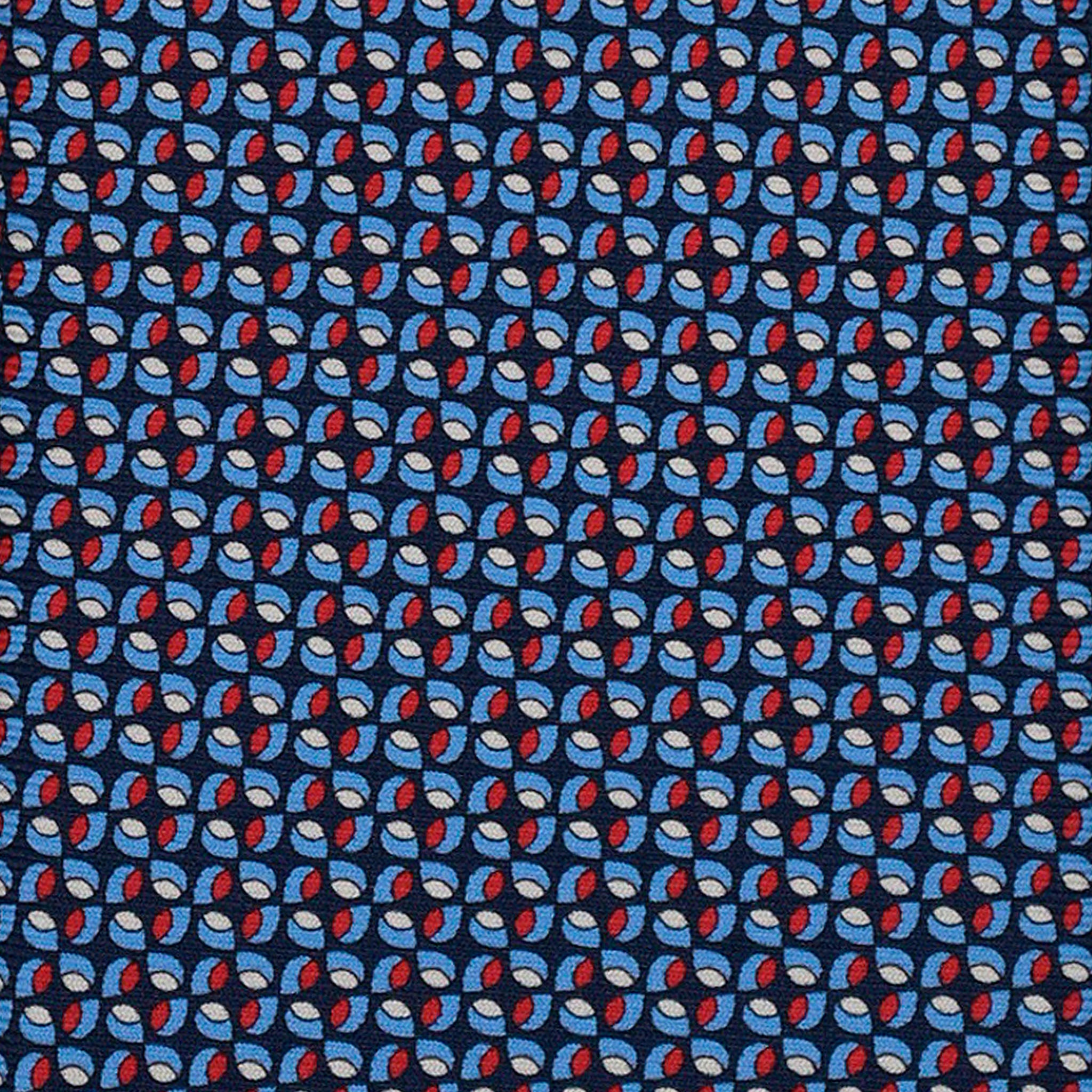 3-Fold Silk Tie, Geometric Pattern, Blue and Red - 3075