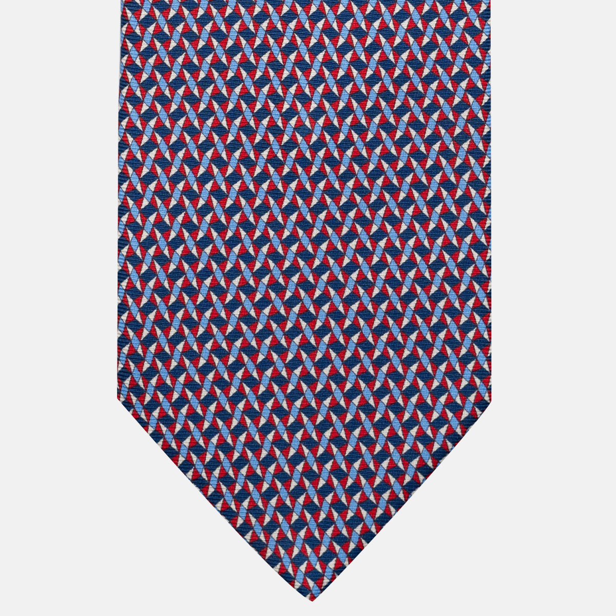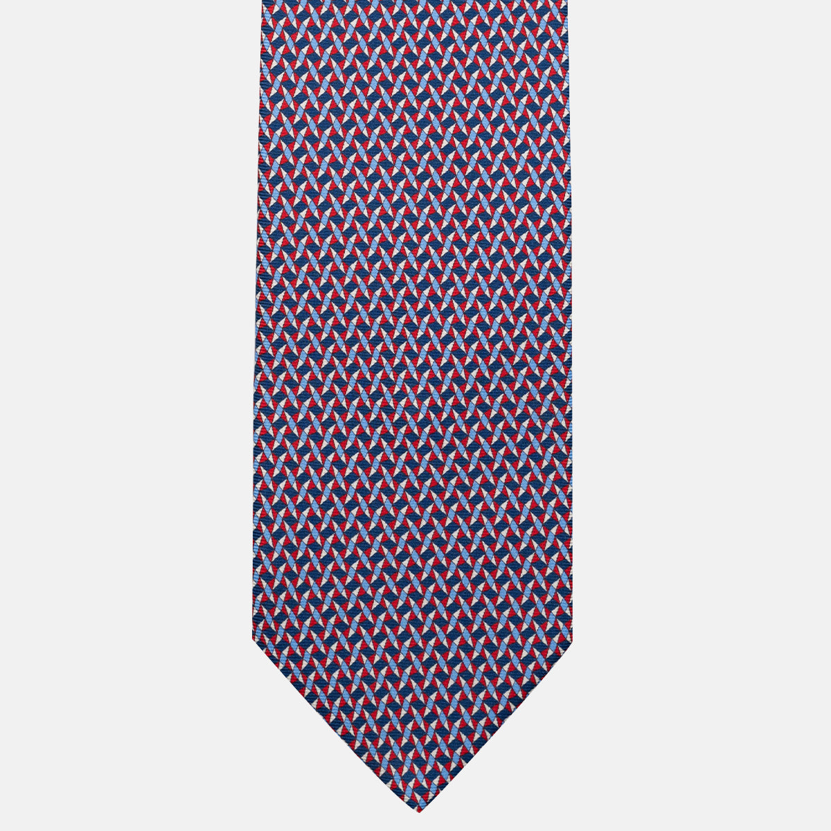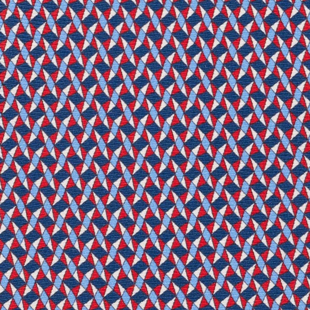 3-Fold Silk Tie, Geometric Pattern, Blue and Red - JA055943-1