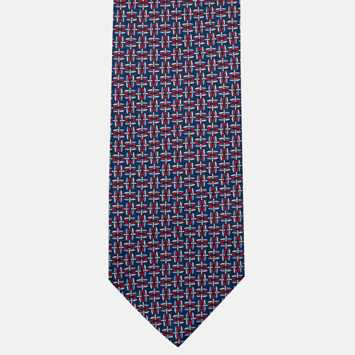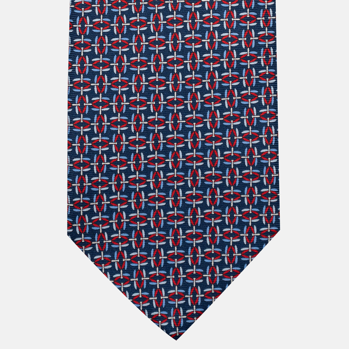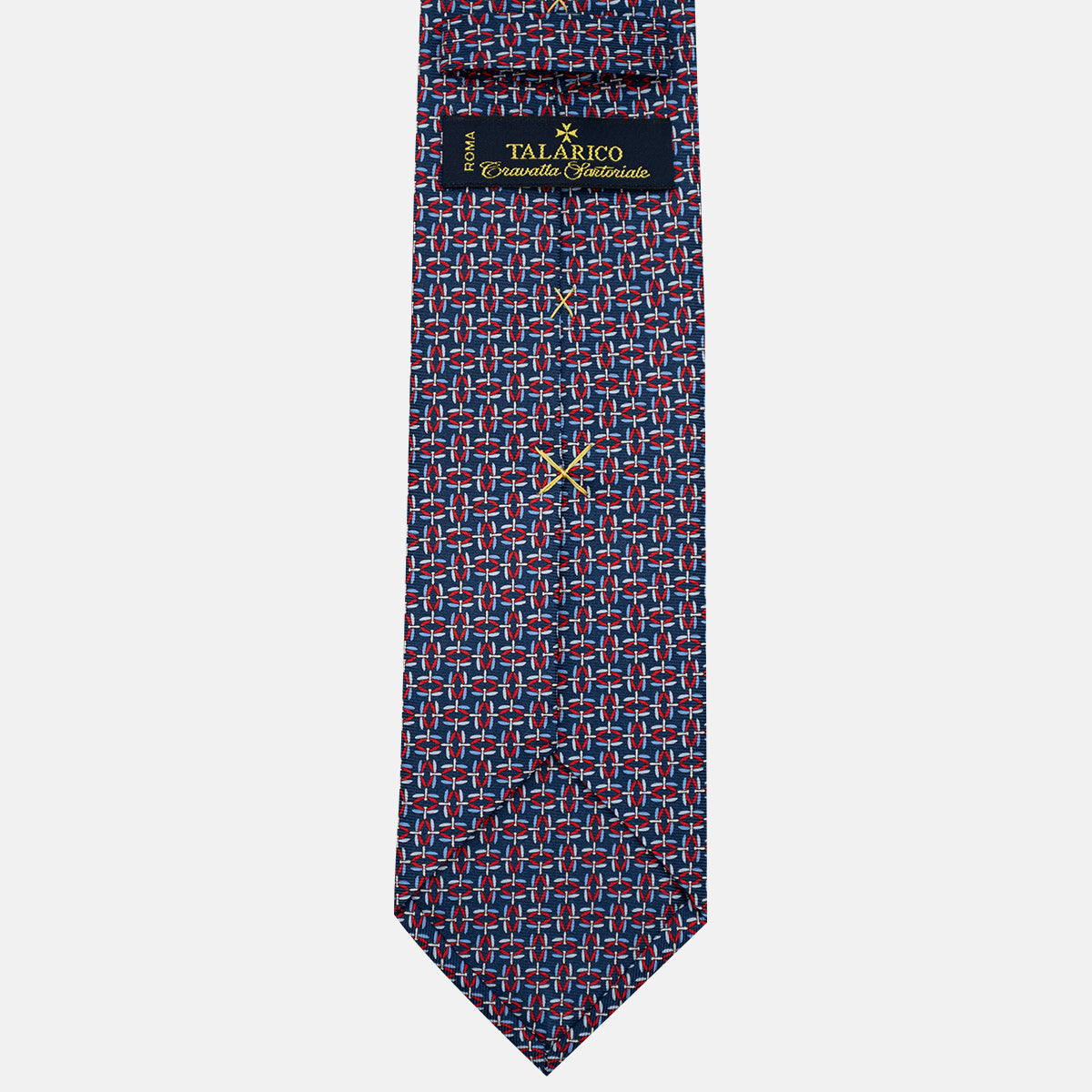 Cravatta 3 pieghe in Seta, Fantasia Geometrica, Blu Rosso - JC056226-2