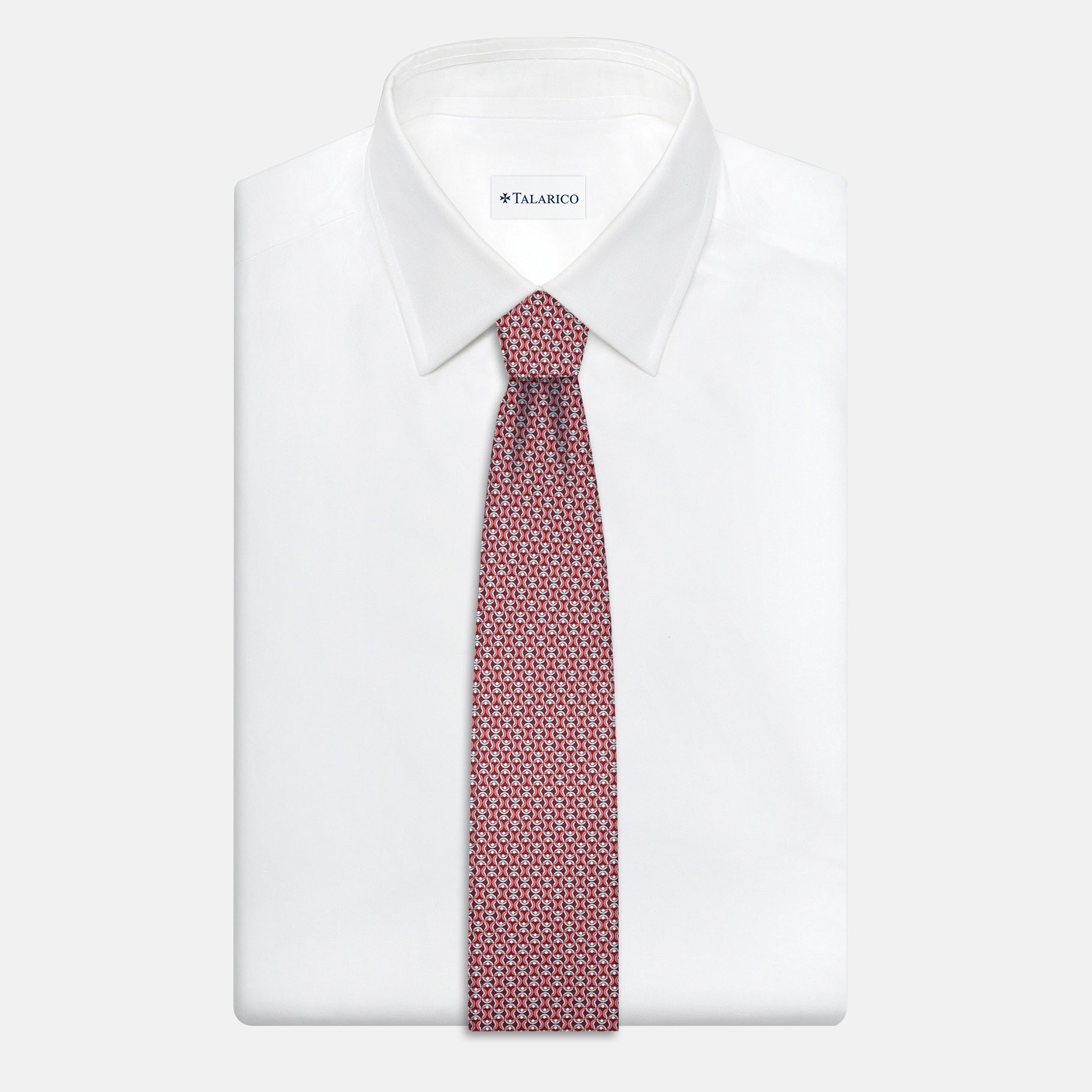 3-Fold Silk Tie, Geometric Pattern, Bordeaux - JA056334-3
