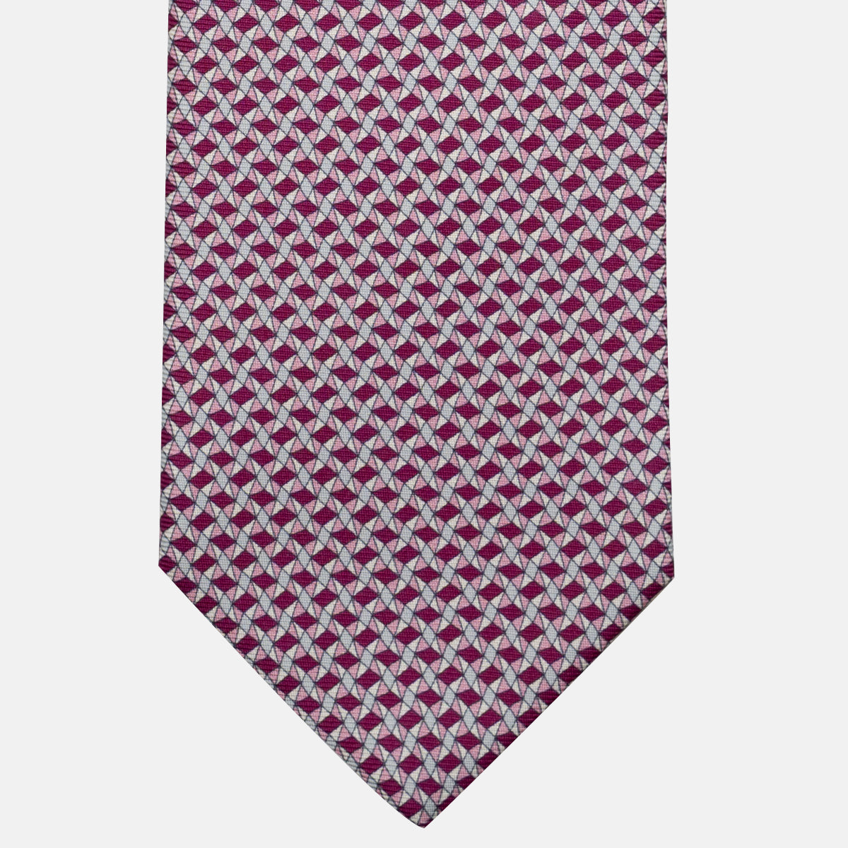 3-Fold Silk Tie, Geometric Pattern, Magenta - JA055943-2