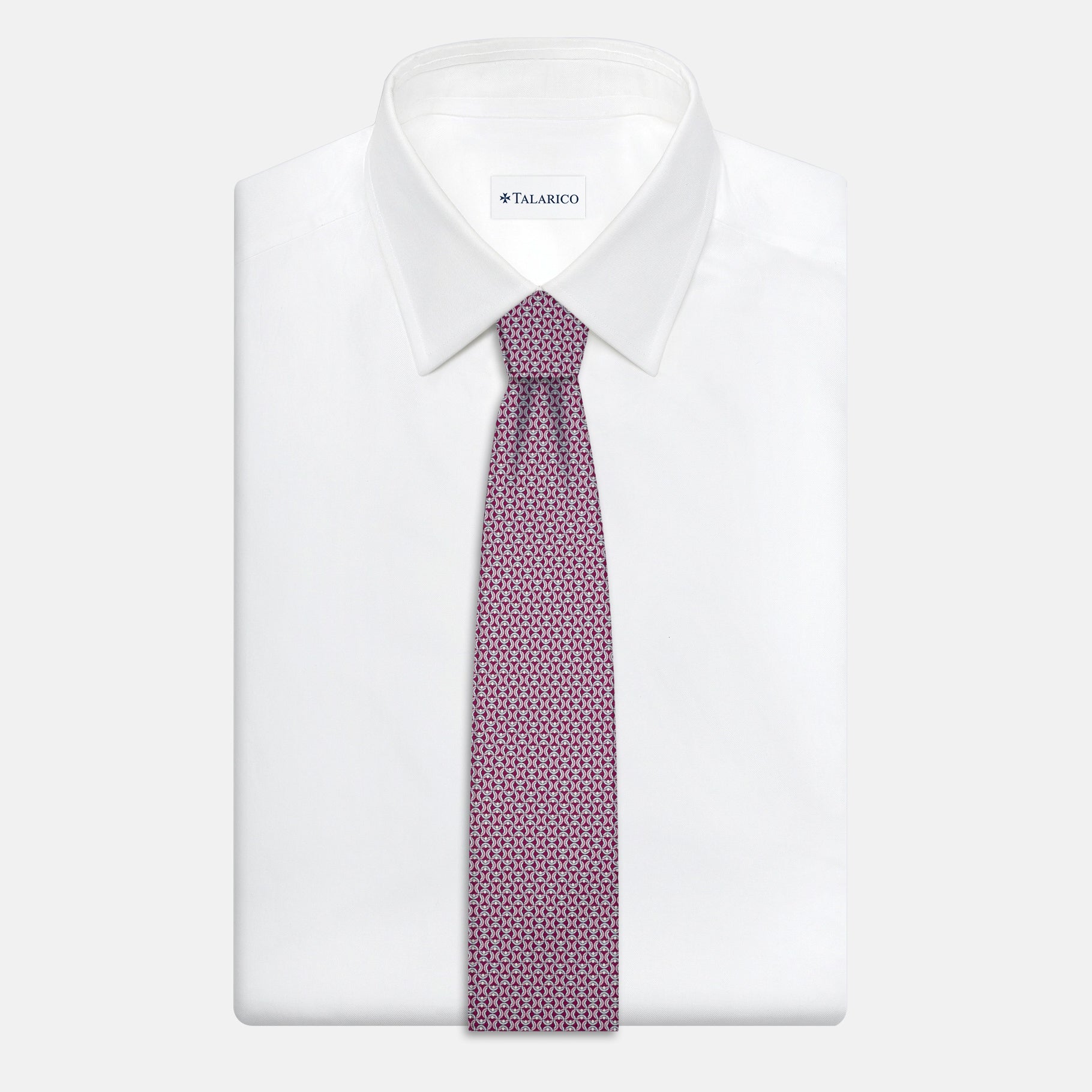 3-Fold Silk Tie, Geometric Pattern, Magenta - JA056334-6