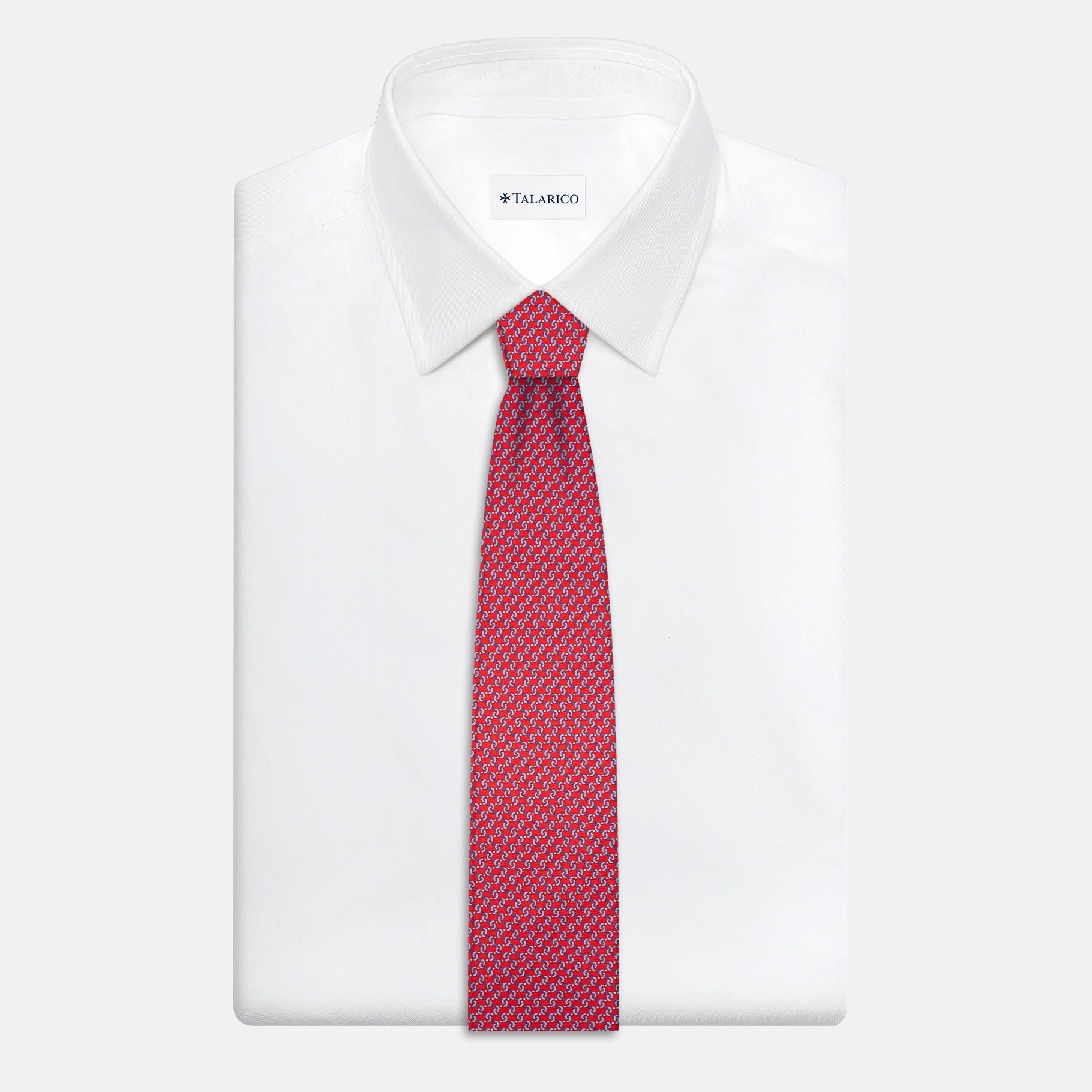 3-Fold Silk Tie, Geometric Pattern, Red - JA056669-8