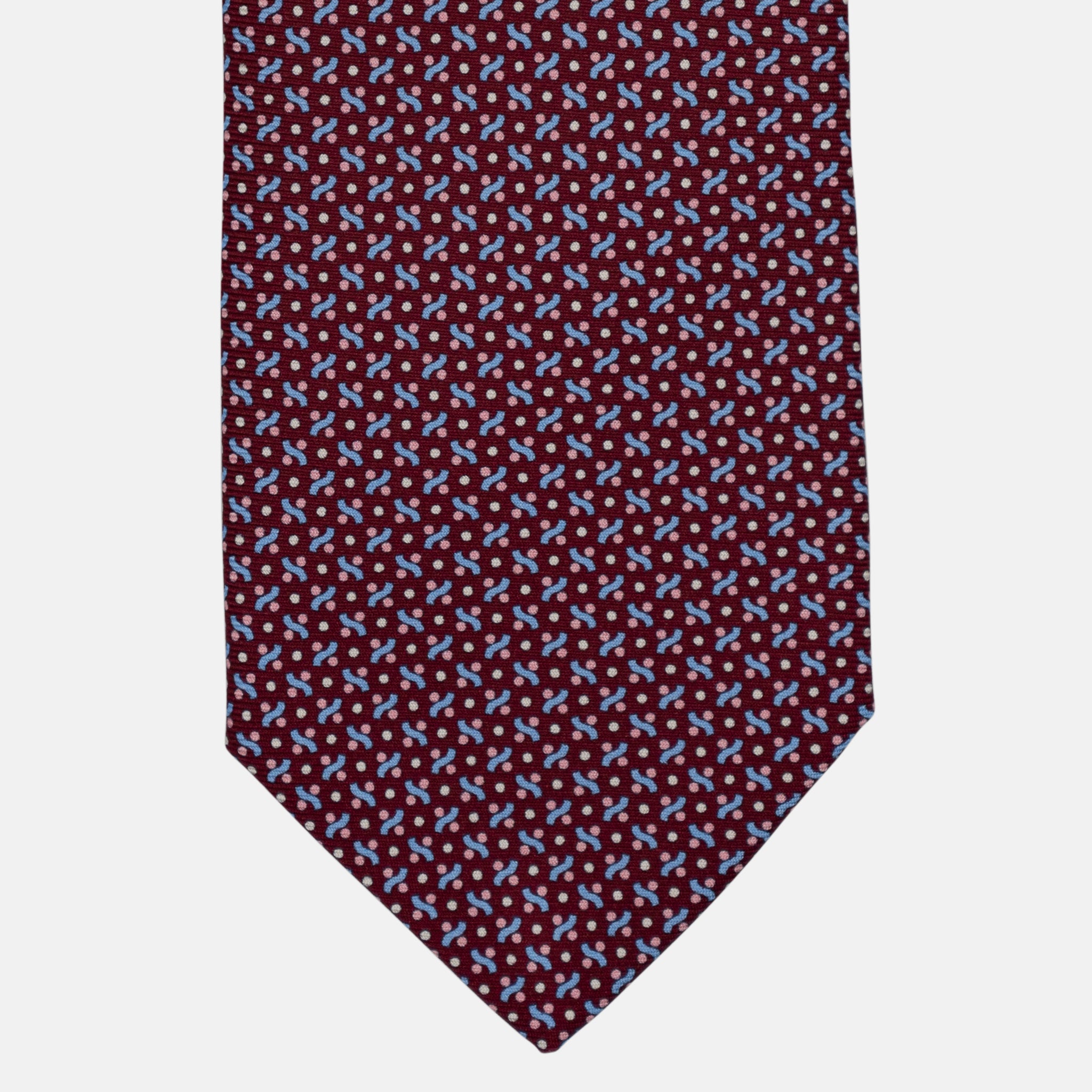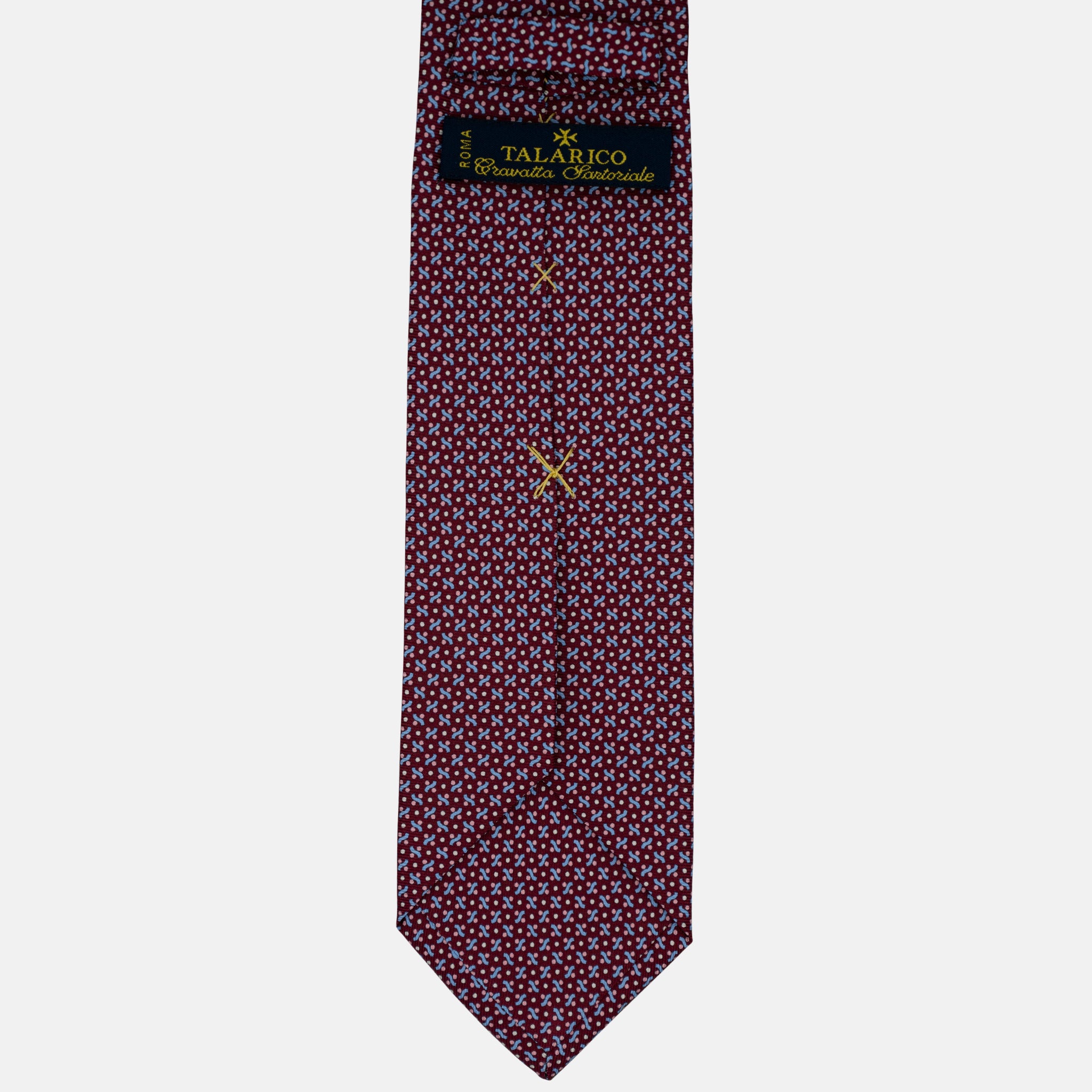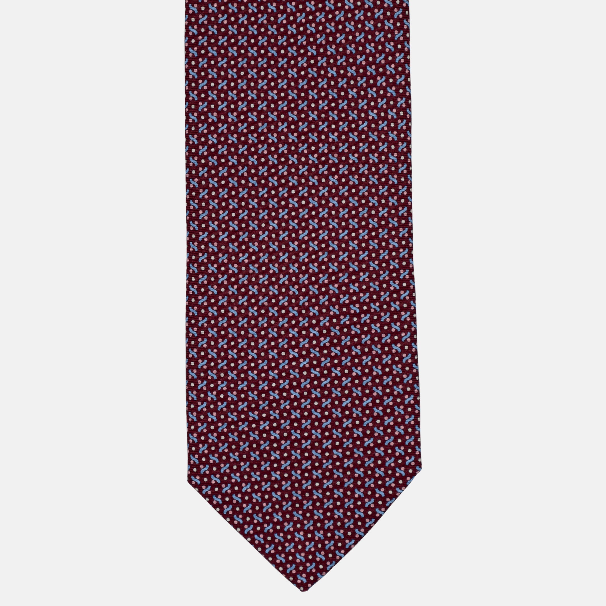 3-Fold Silk Tie, Micro Geometric Pattern, Light Blue Bordeaux - 2971