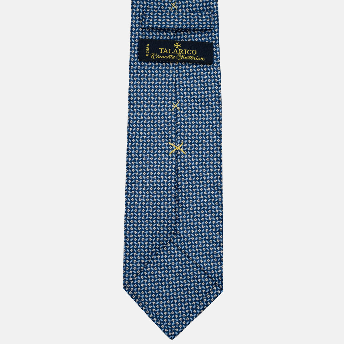 Le cravatte Talarico 3 pieghe sono realizzate in solo 3 e esemplari per Variante. Il tessuto è in seta twill 36 once prodotto in Italia.
