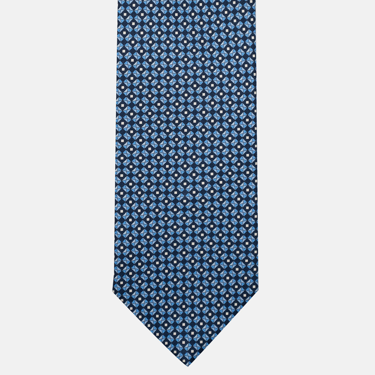 3-Fold Silk Tie, Micro Geometric Pattern, Light Blue - JA055920-1