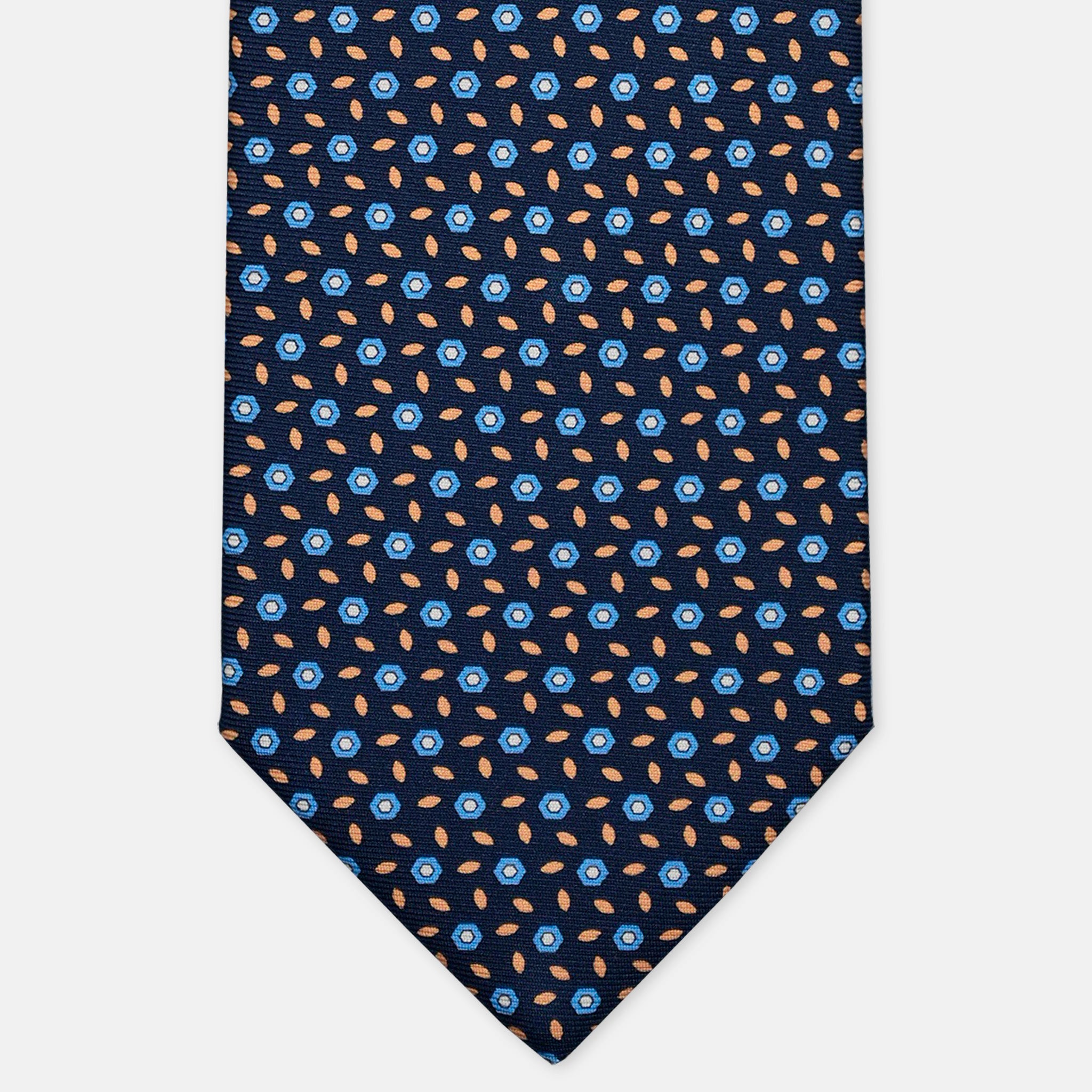 3-Fold Silk Tie, Floral Pattern, Blue and Yellow - 3115
