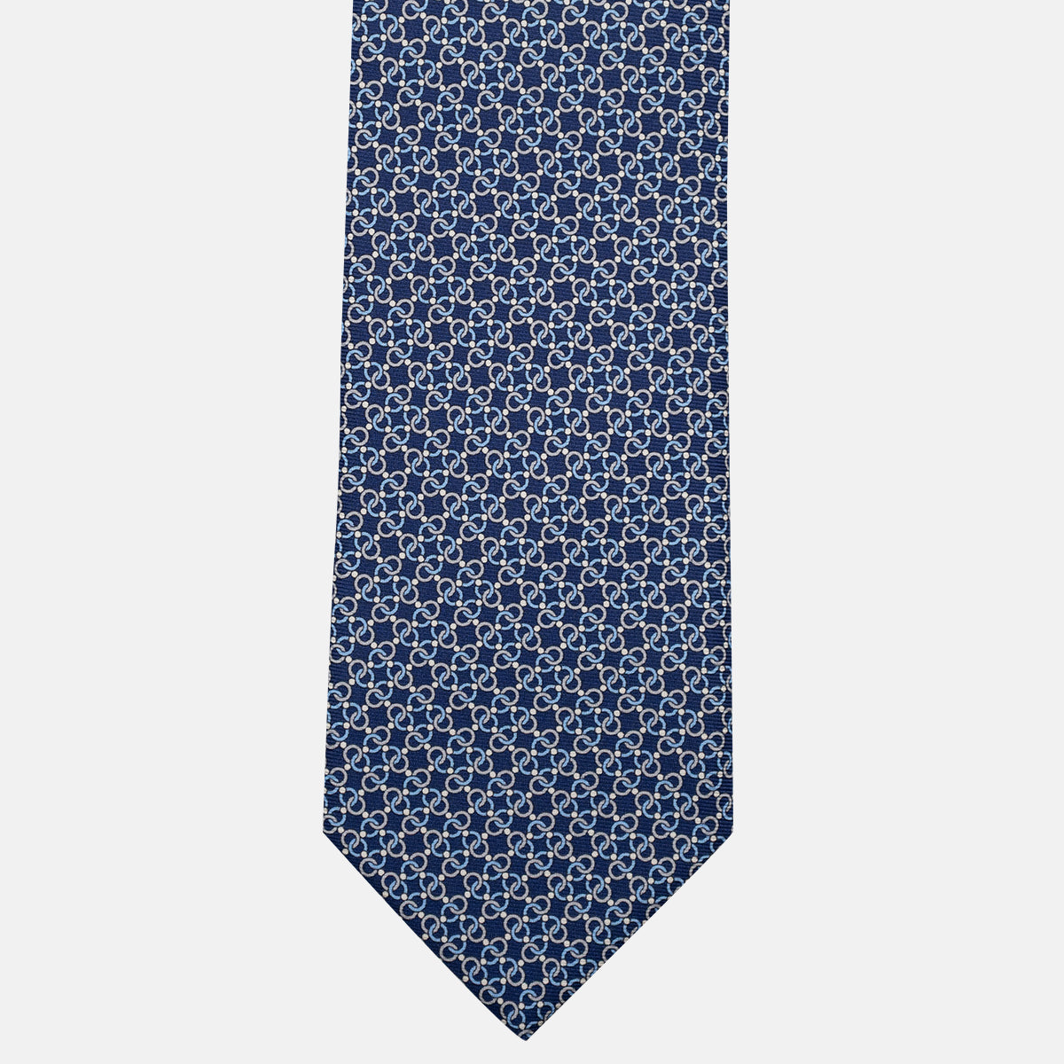 3-Fold Silk Tie, Chain Pattern, Blue and Grey - JA055937-2