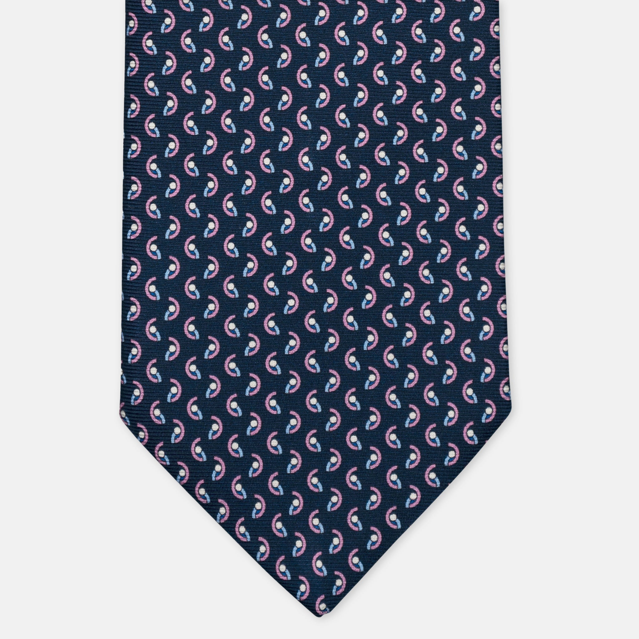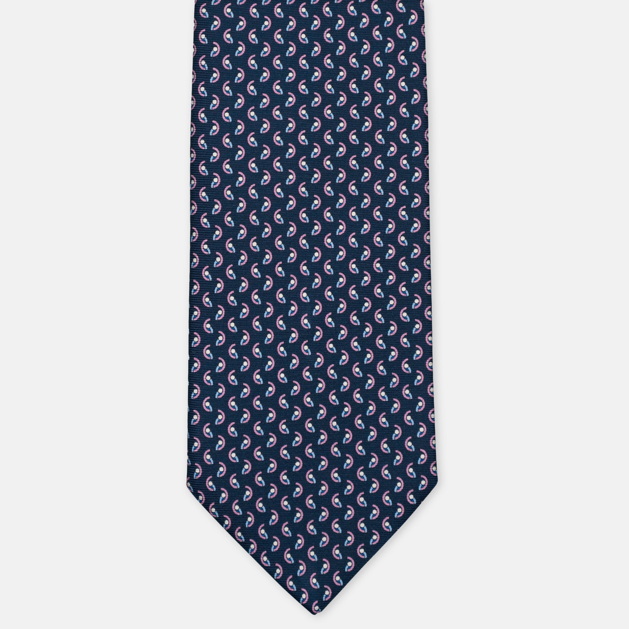 3-Fold Silk Tie, Micro Geometric Pattern, Blue Pink - 3125