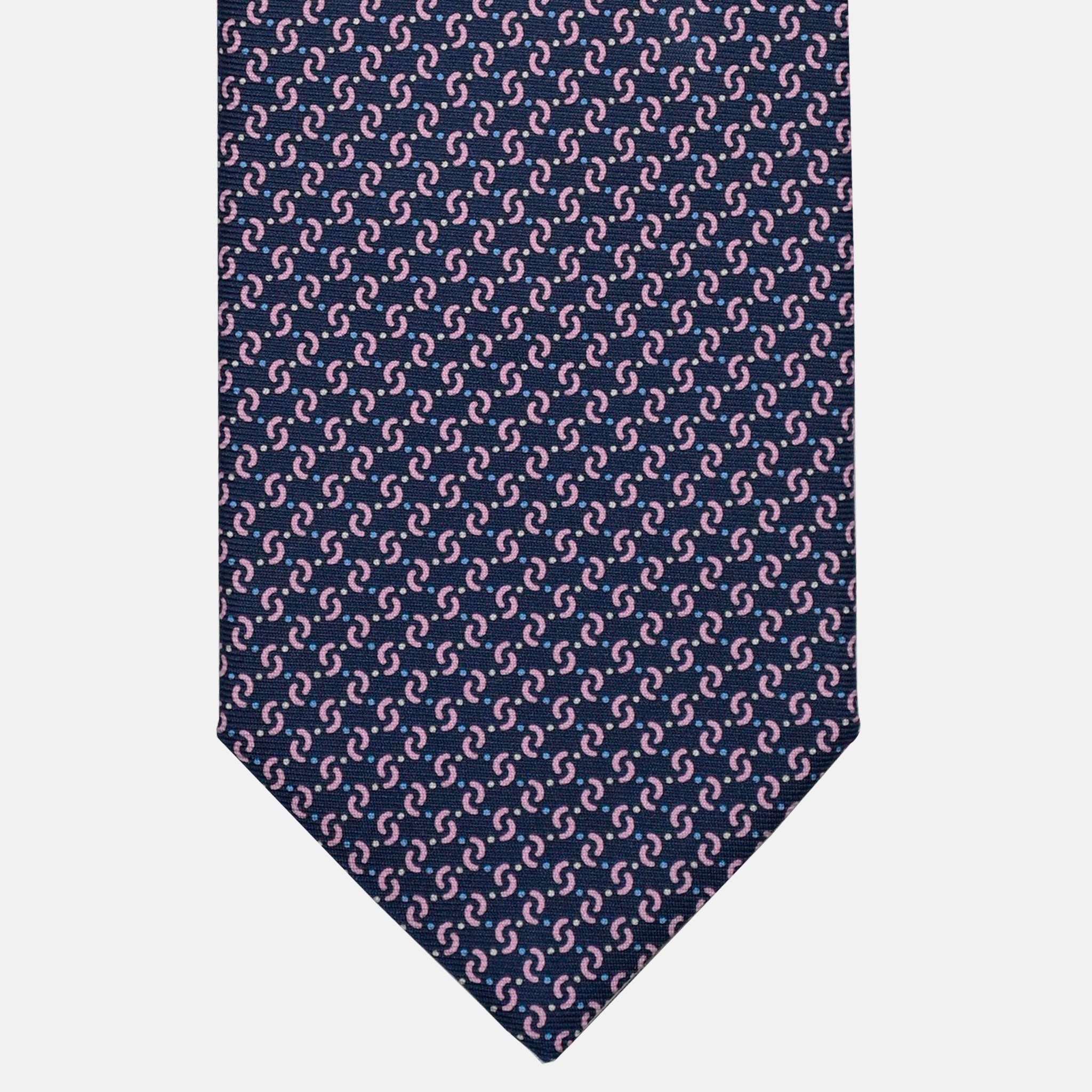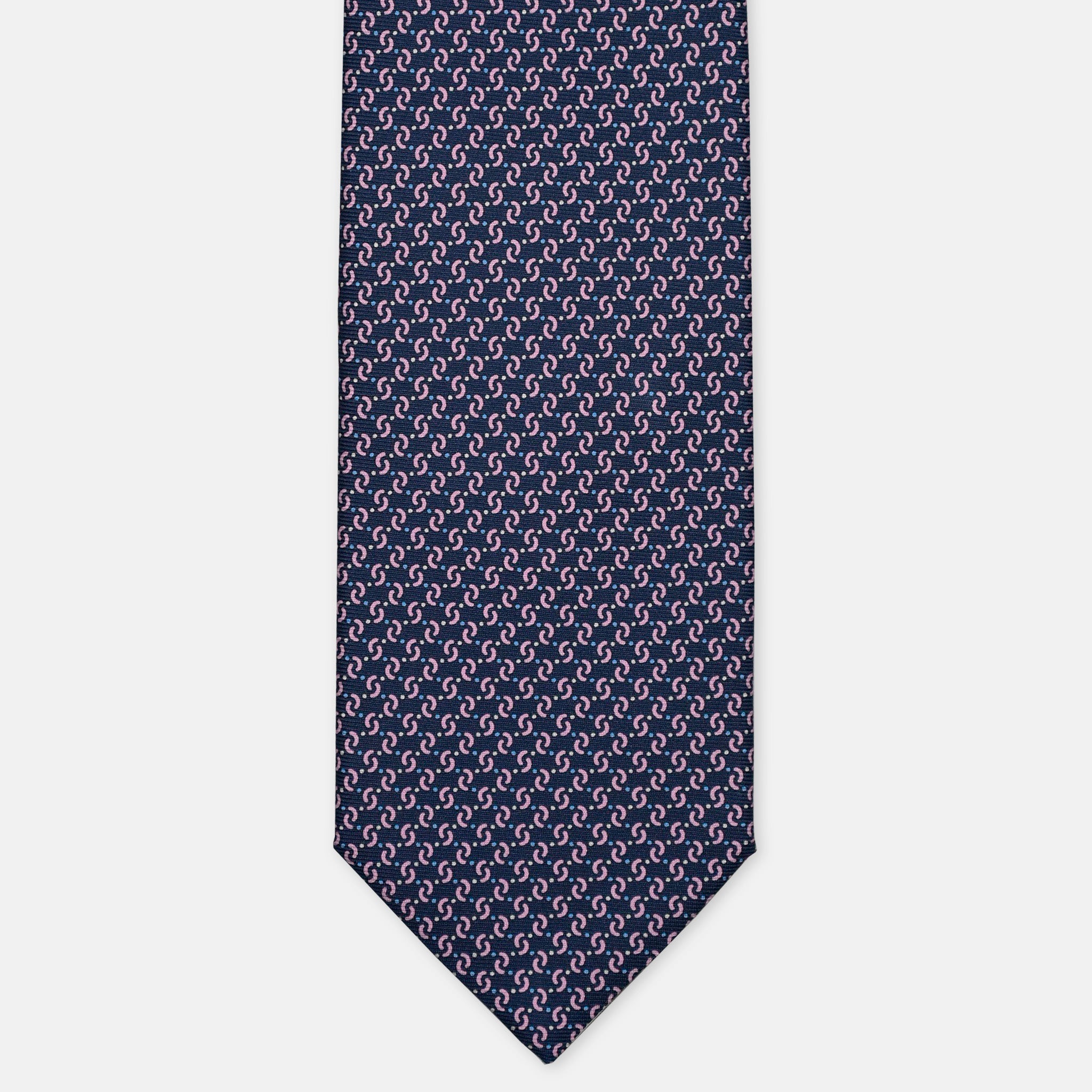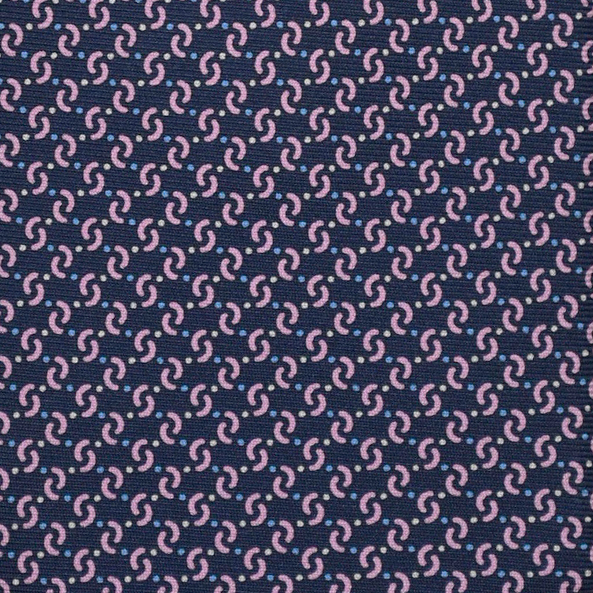 3-Fold Silk Tie, Micro Geometric Pattern, Blue Pink - 3127