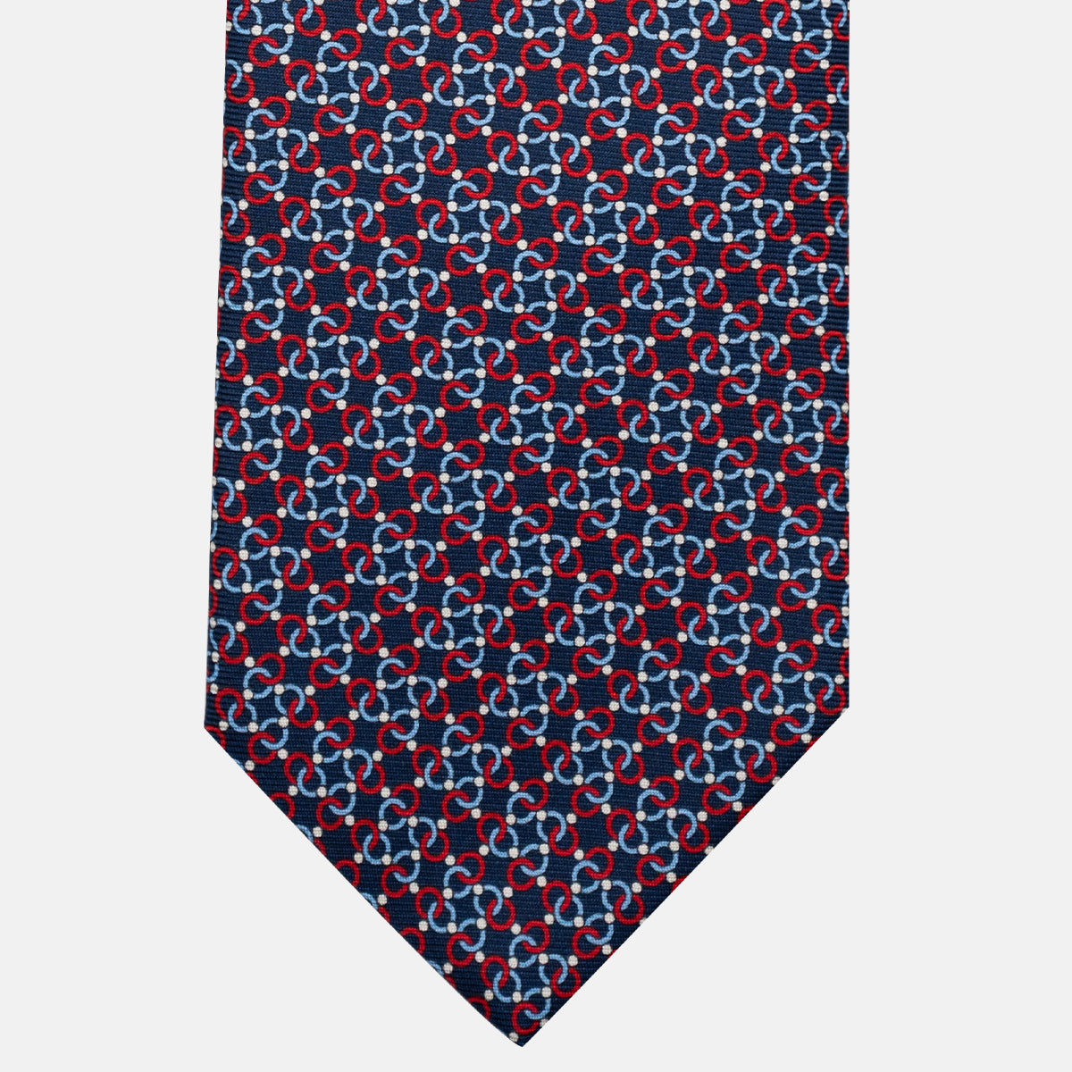 3-Fold Silk Tie, Chain Pattern, Blue and Red - JA055937-3