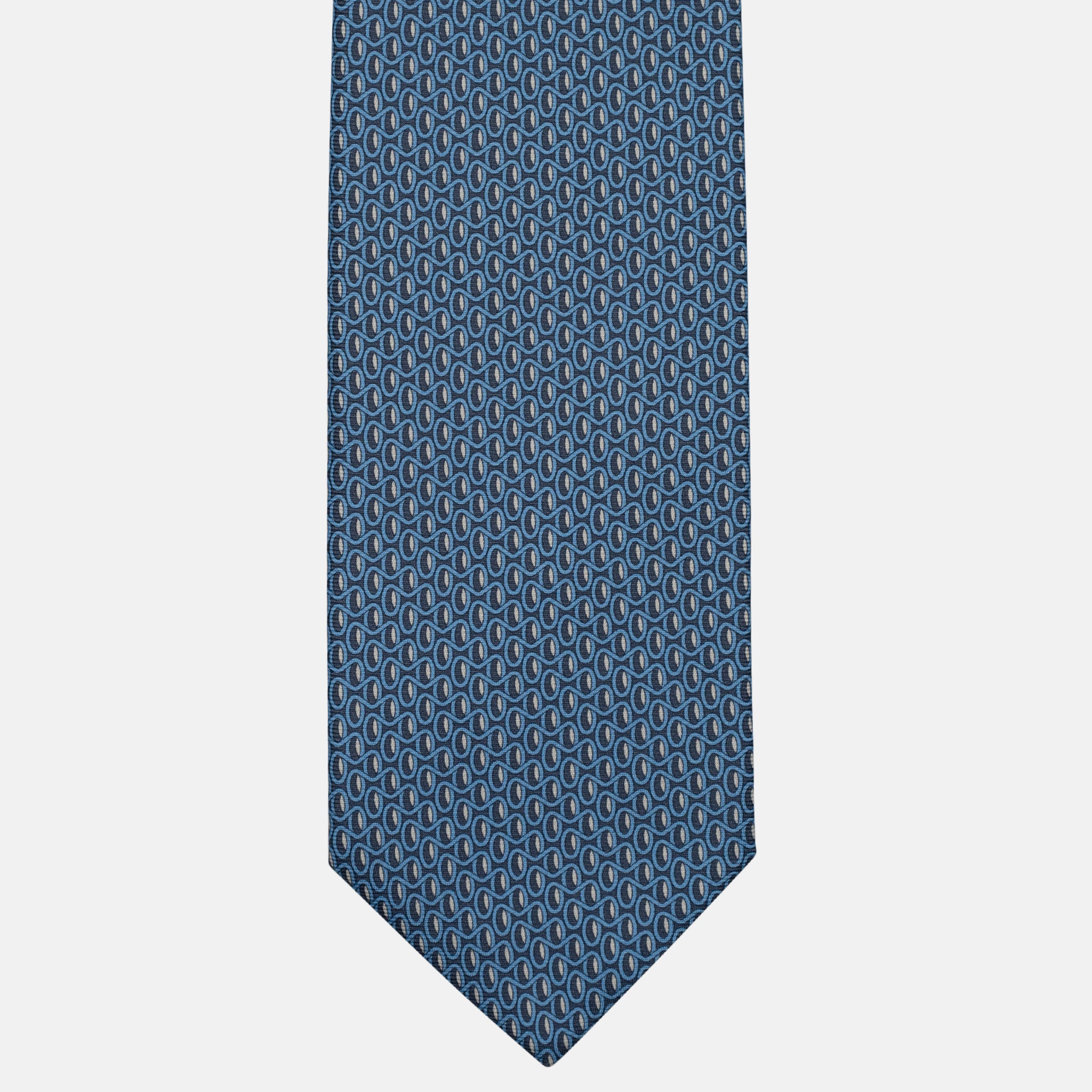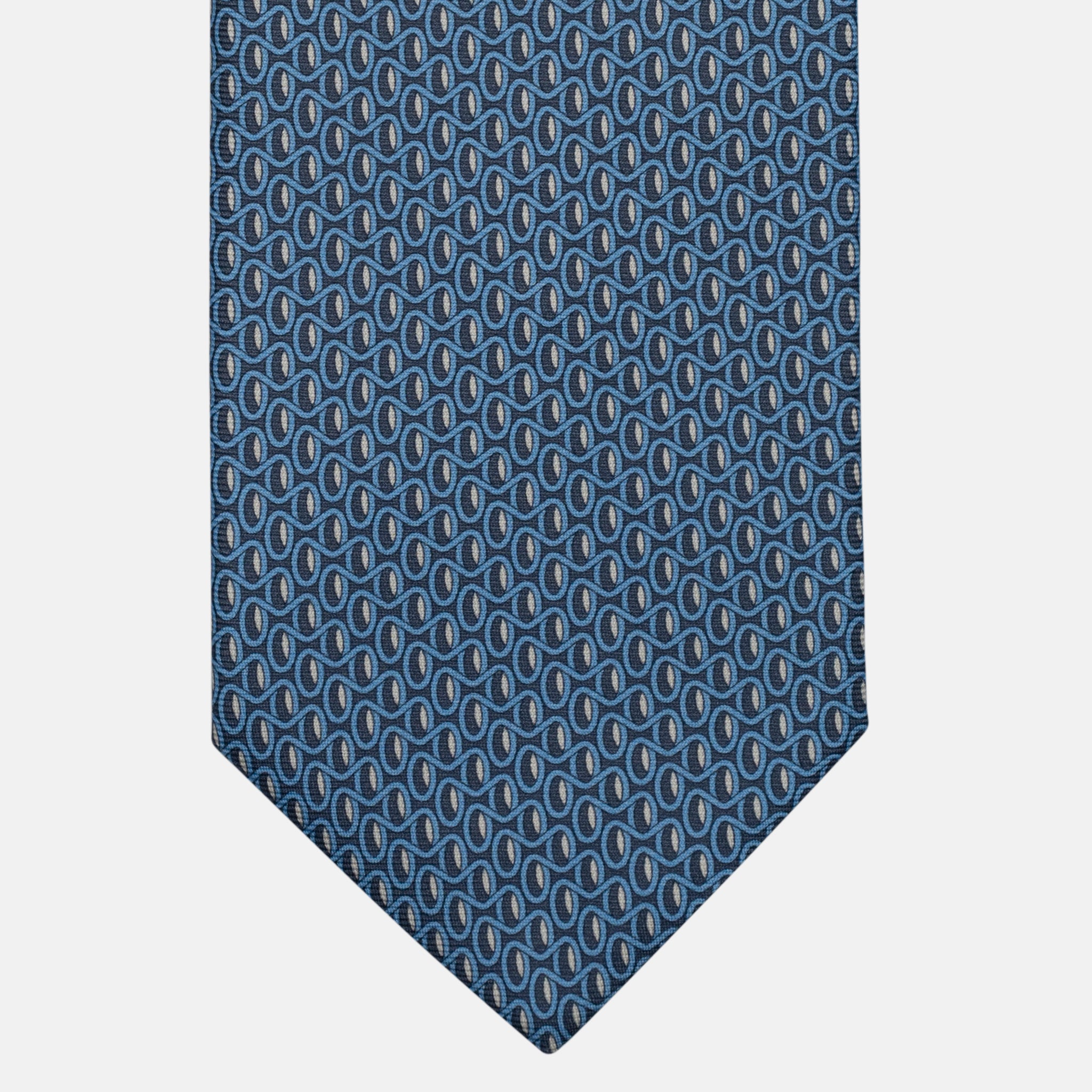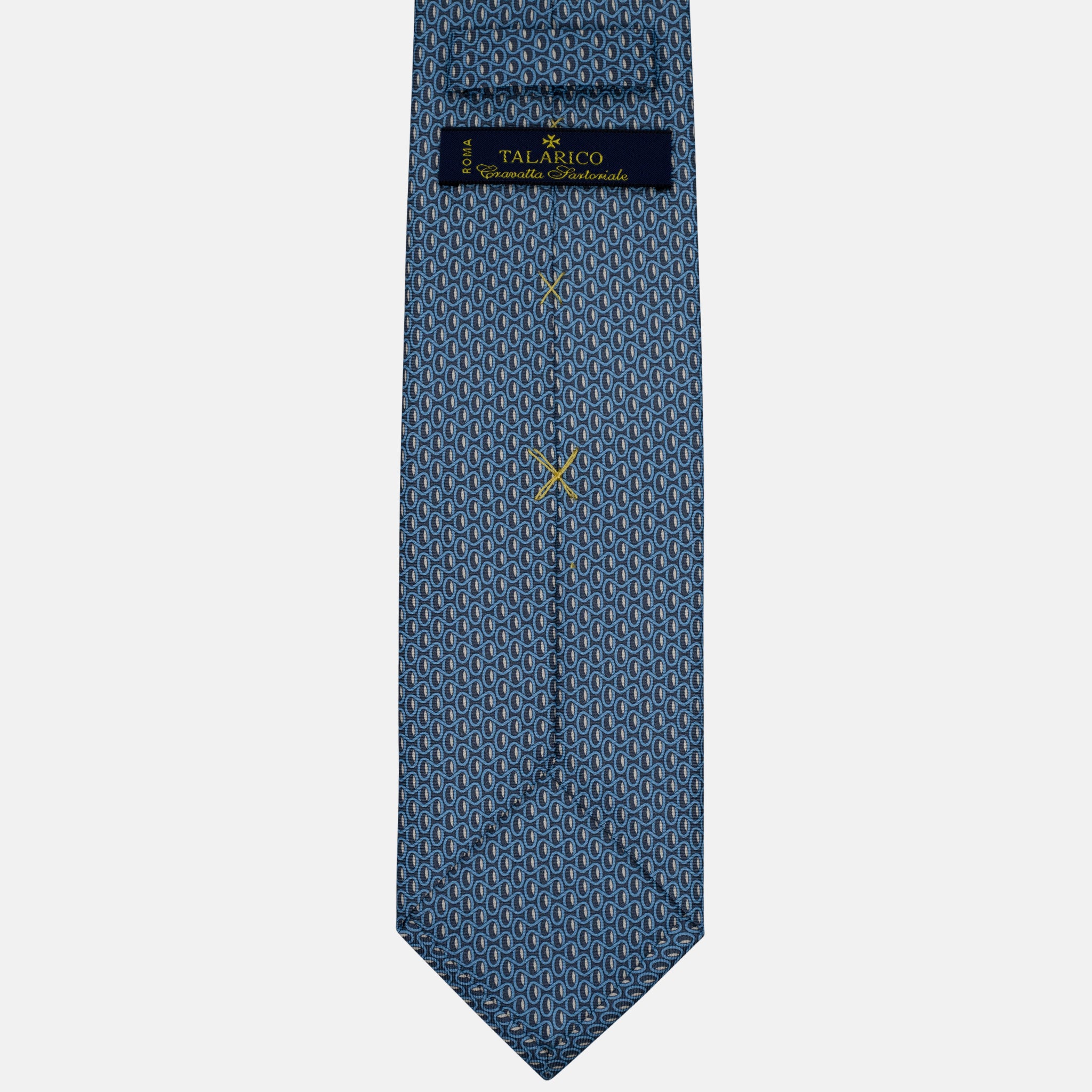 3-Fold Silk Tie, Micro Geometric Pattern, Light Blue Grey - 3106