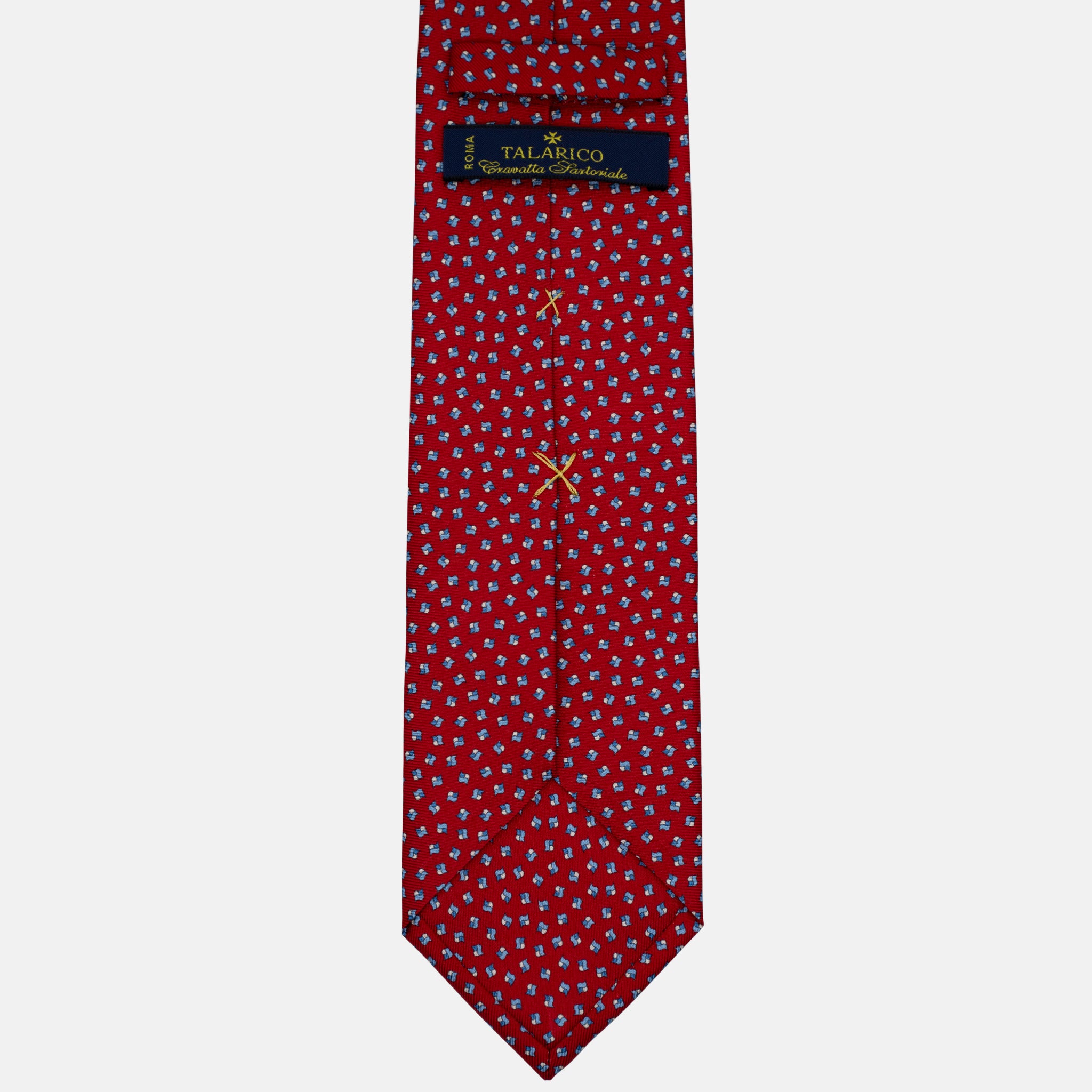 3-Fold Silk Tie, Micro Geometric Pattern, Red and Light Blue - 3007