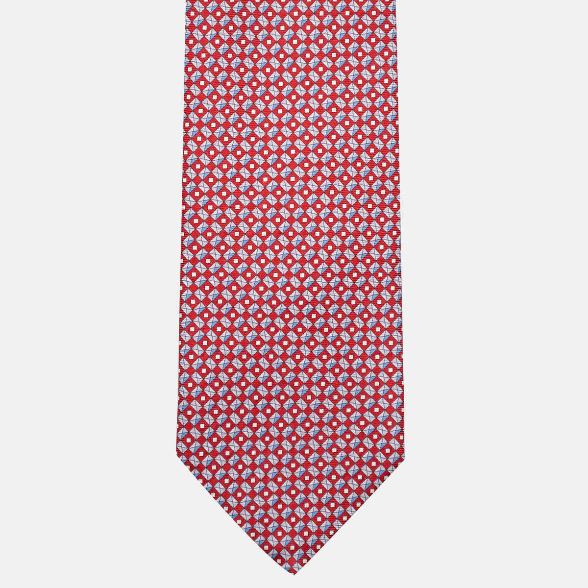 3-Fold Silk Tie, Geometric Pattern, Red - JA055920-5