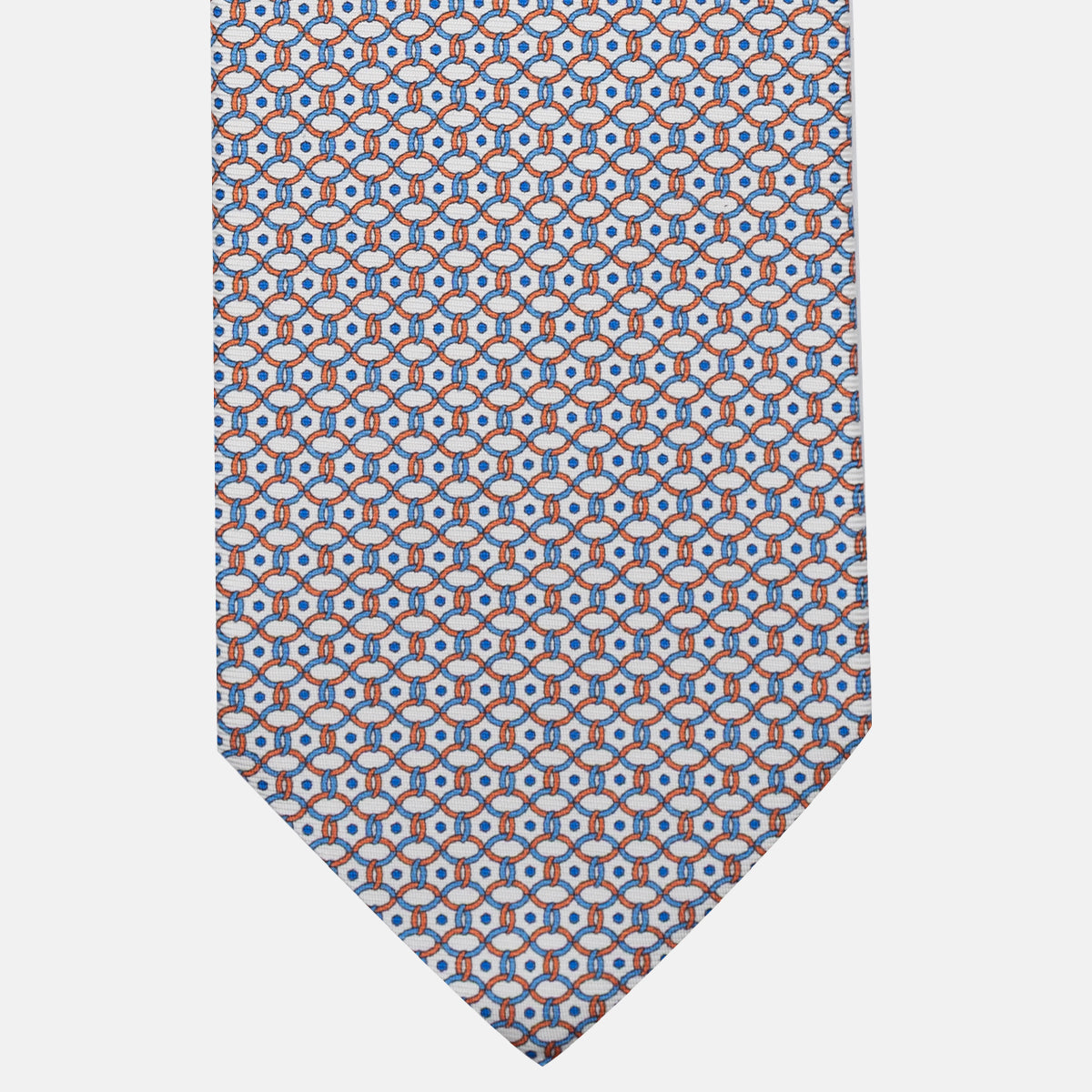 Cravatta 3 pieghe in Seta Fantasia Concatenata Bianco Arancione - MO9962