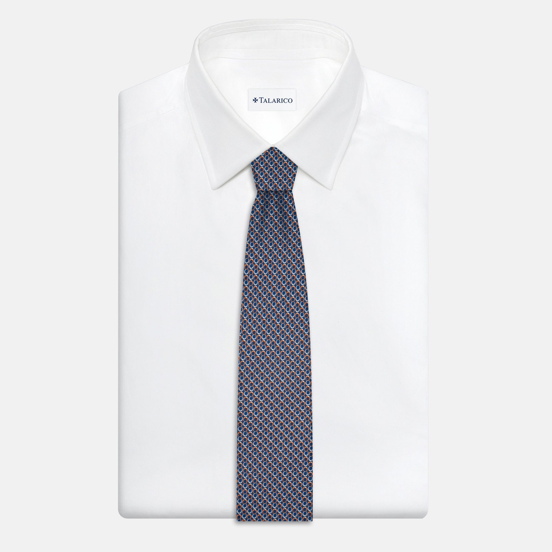 3-Fold Silk Tie, Horseshoe Pattern, Blue Orange - JC056339-9