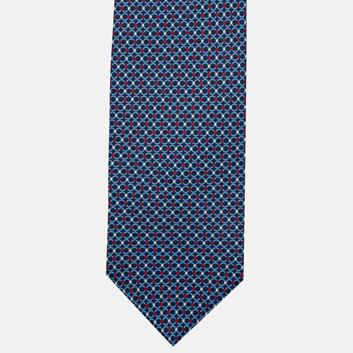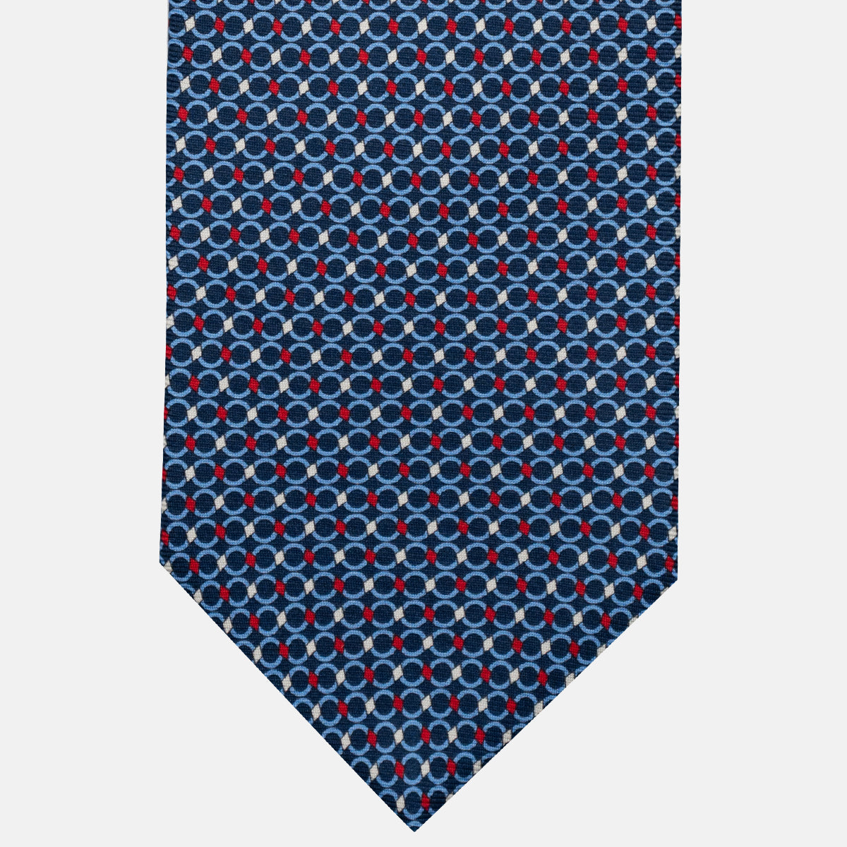 3-Fold Silk Tie, Chain Pattern, Blue and Red - JA057080-2