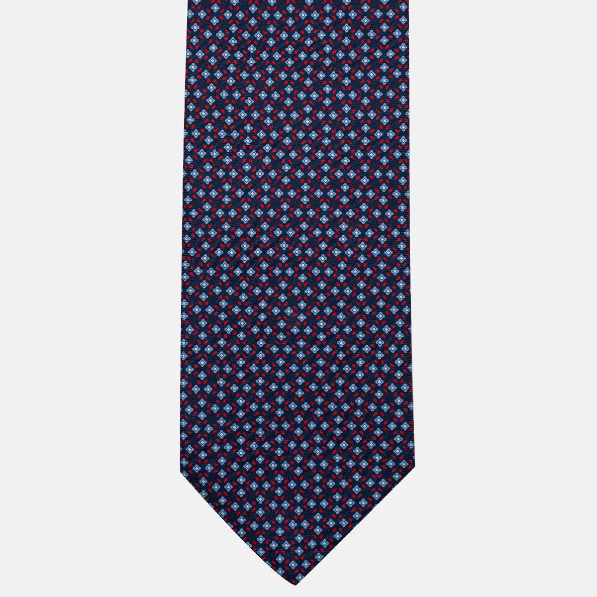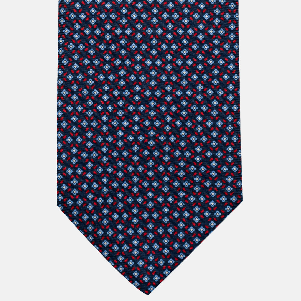 3-Fold Silk Tie, Floral Pattern, Blue and Red - JA056130-3