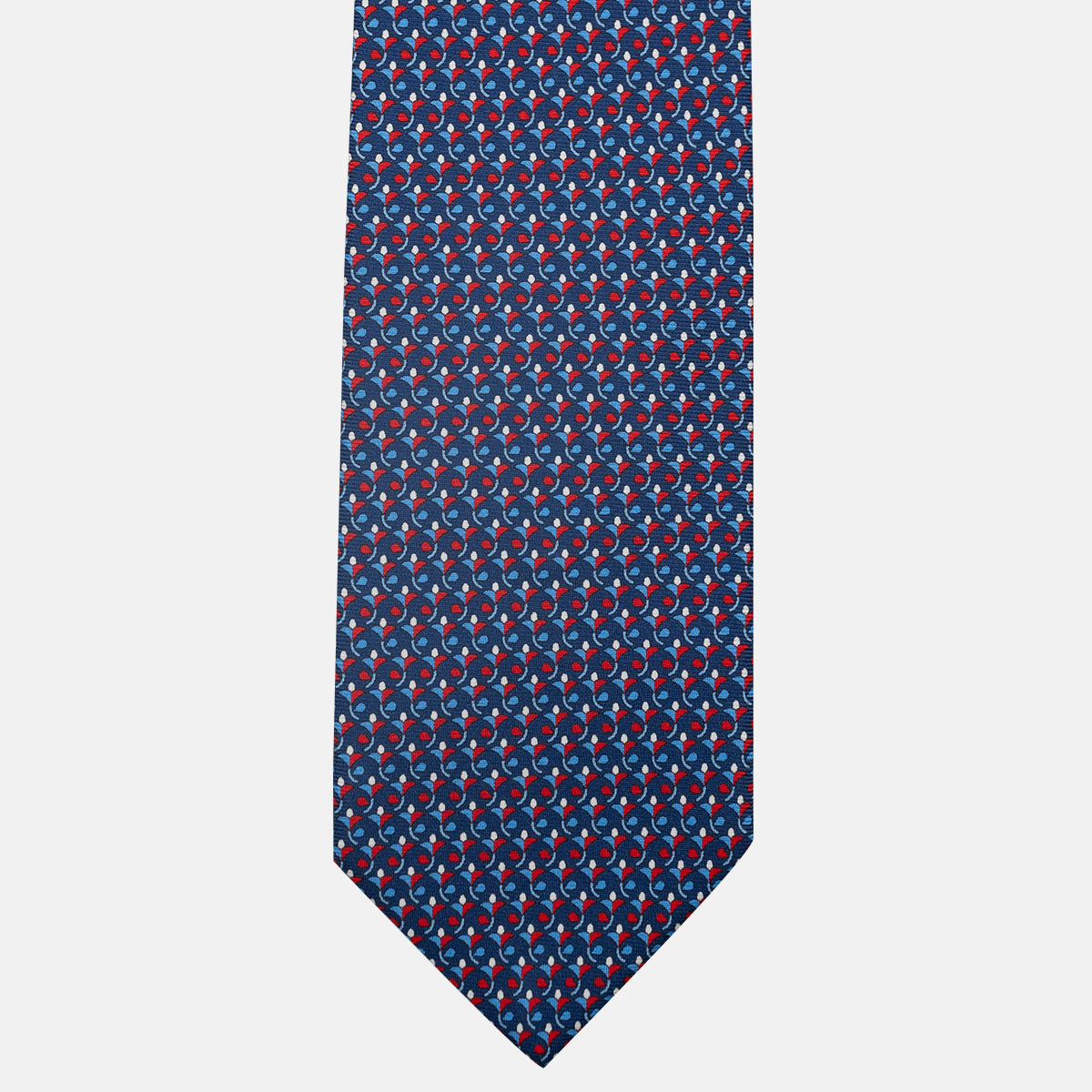 3-Fold Silk Tie, Floral Pattern, Blue and Red - JC060094_1