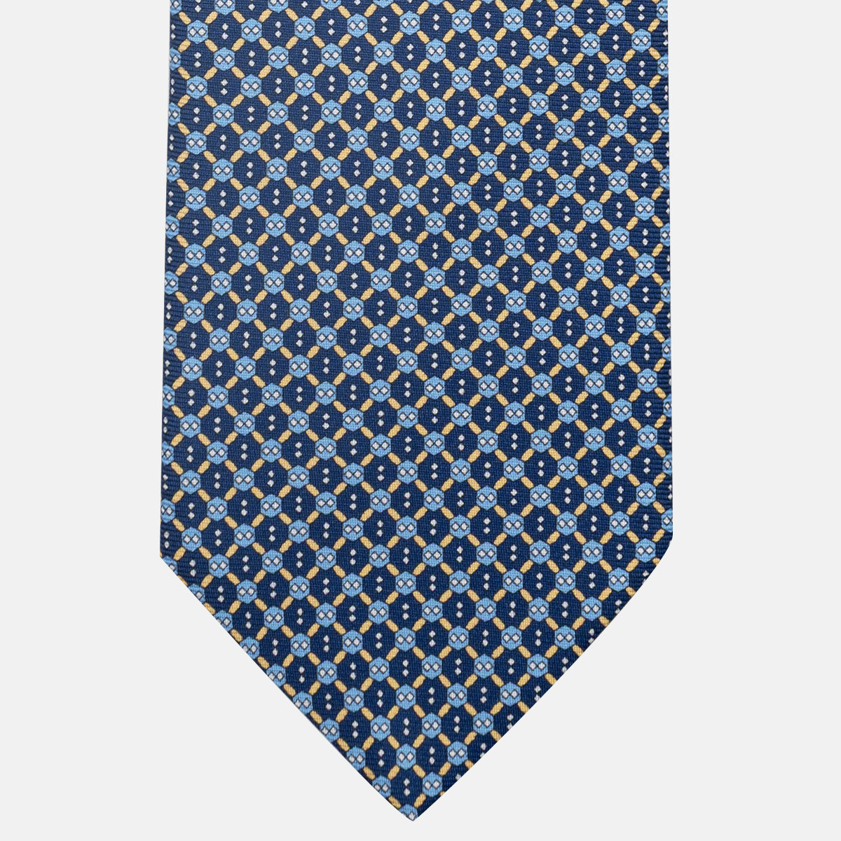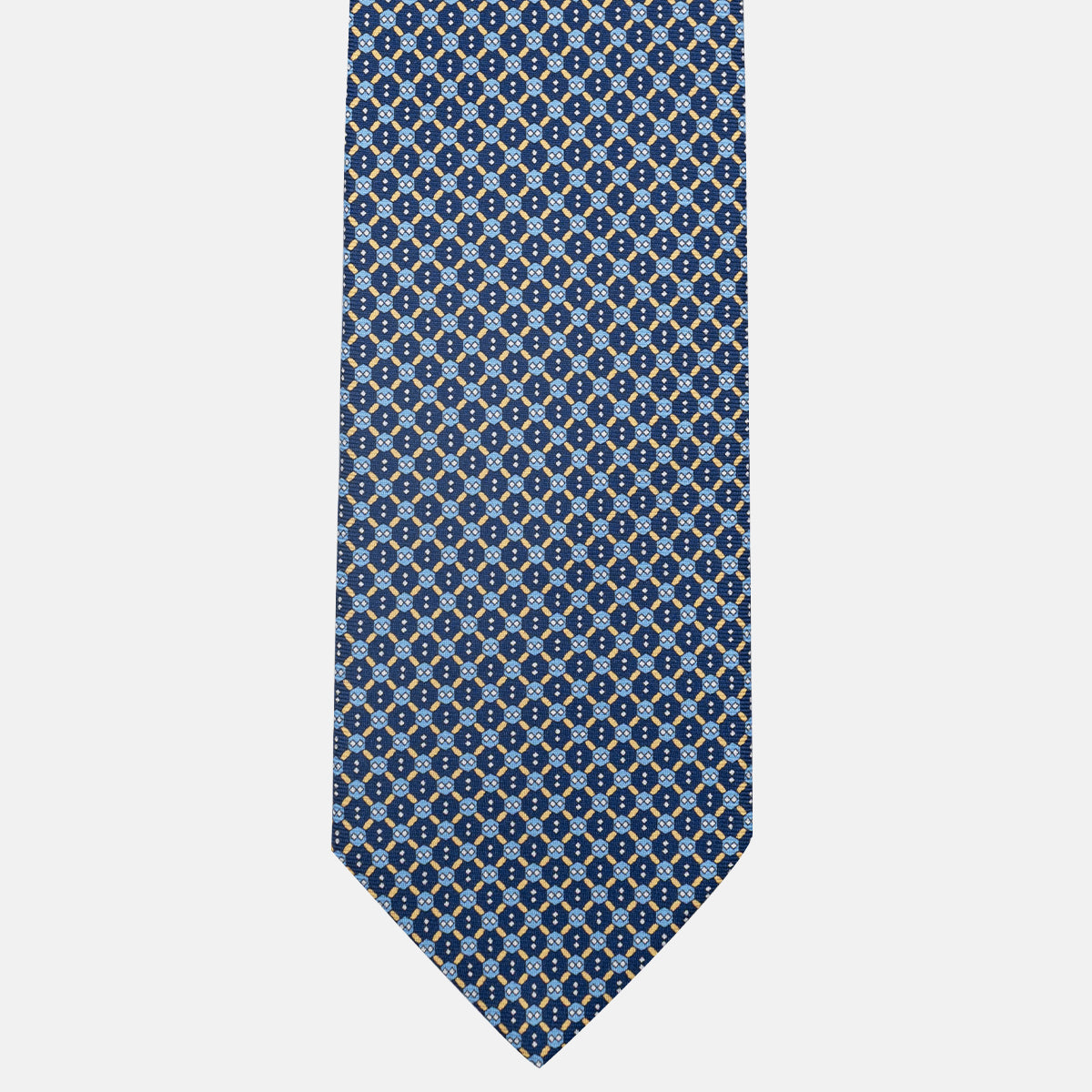 3-Fold Silk Tie, Geometric Pattern, Blue and Yellow - JA058626_4