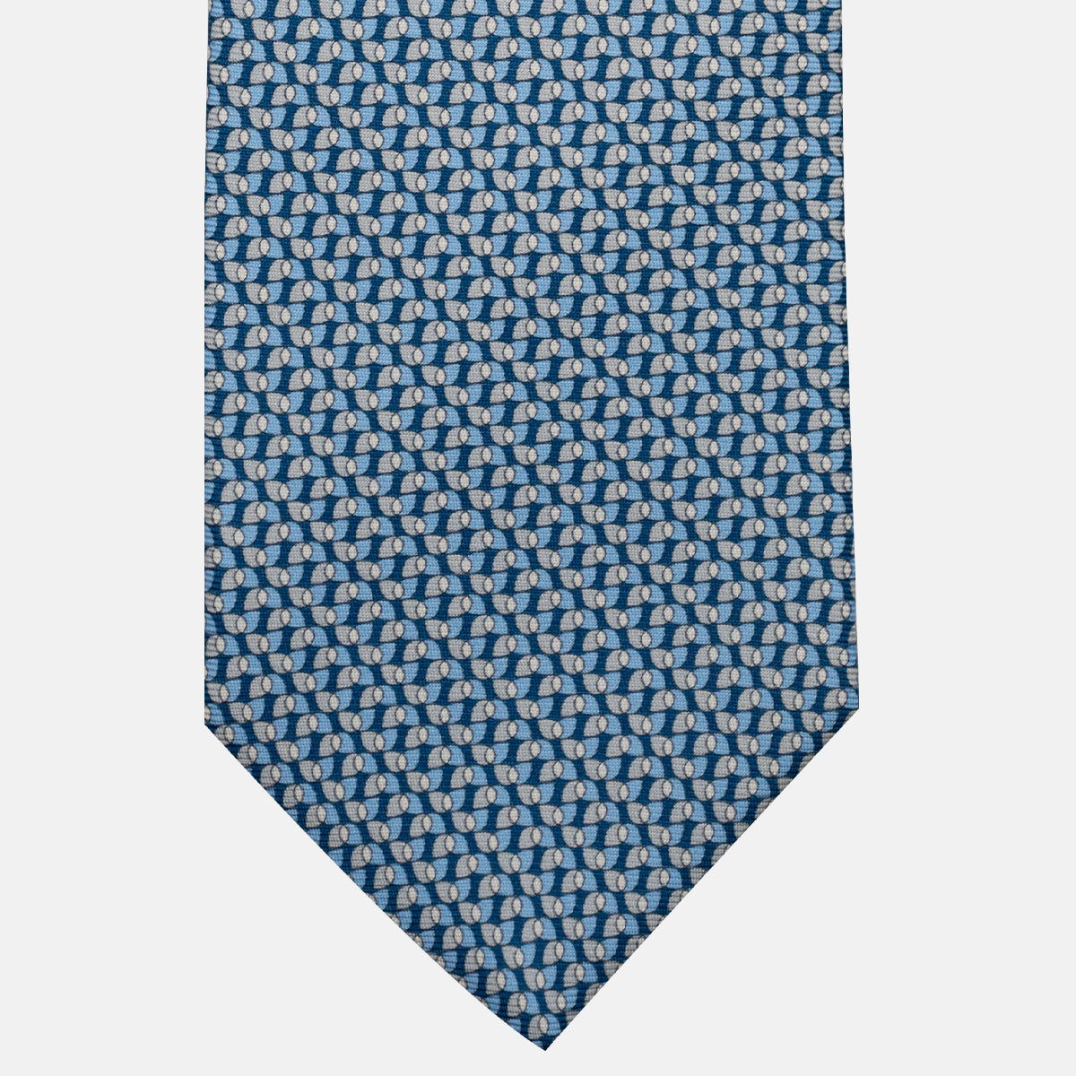 3-Fold Silk Tie, Geometric Pattern, Blue and Grey - JA056123-7