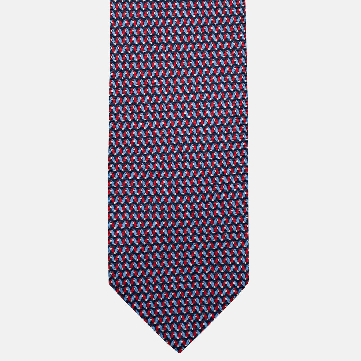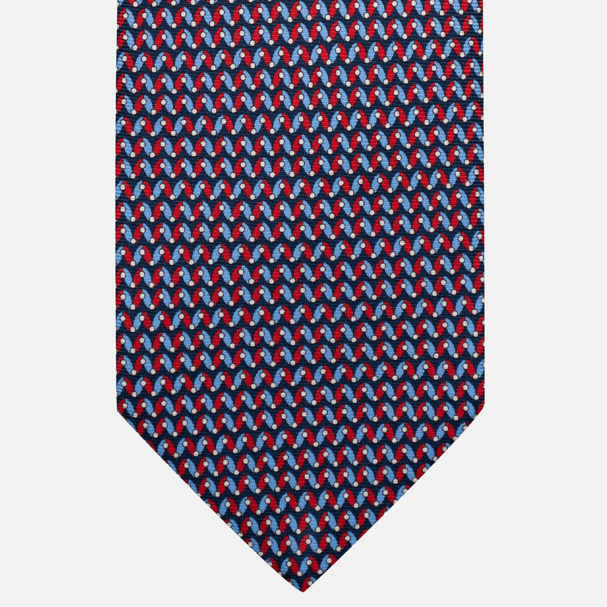 3-Fold Silk Tie, Geometric Pattern, Blue and Red - JA056675-1