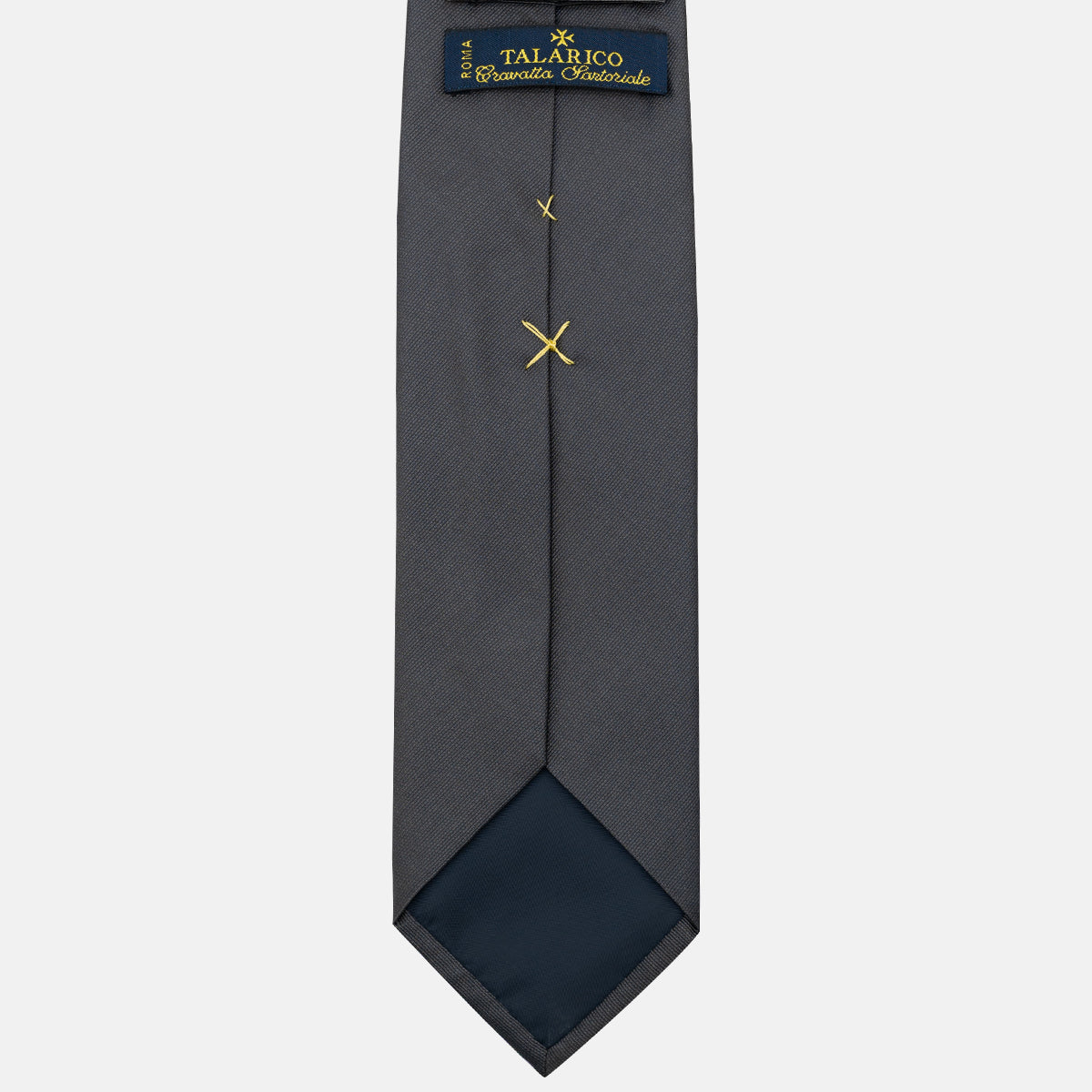 Talarico 3-fold ties are produced in a limited edition of just three pieces per variant. The fabric is jacquard silk with 116 inserts per cm and is made in Italy. They are entirely handcrafted with an 'X' stitching on the back, the Maison's distinctive symbol. The solidity of the fabric and its weight make it both soft to the touch and drape beautifully when worn.