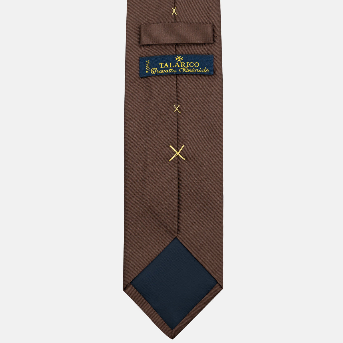 Talarico 3-fold ties are produced in a limited edition of just three pieces per variant. The fabric is jacquard silk with 116 inserts per cm and is made in Italy. They are entirely handcrafted with an 'X' stitching on the back, the Maison's distinctive symbol. The solidity of the fabric and its weight make it both soft to the touch and drape beautifully when worn.
