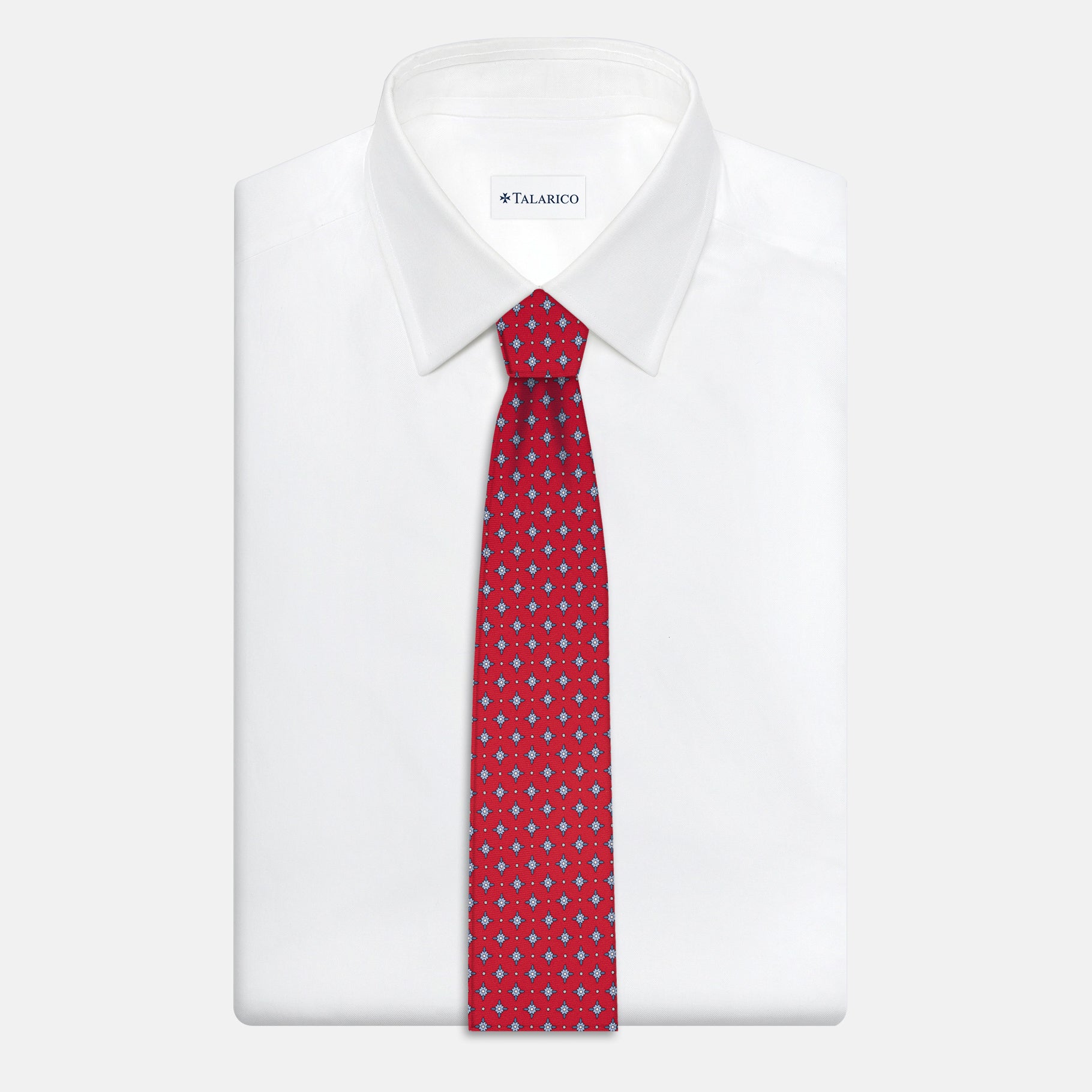 1999 Collection Tie in Floral Pattern Twill Silk Red Light Blue