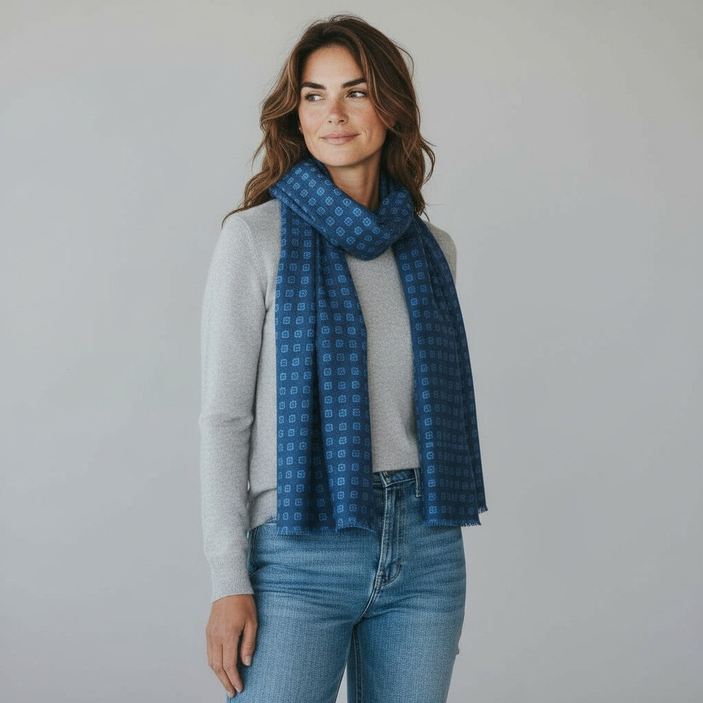 TWO-TONE BLUE PATTERN SCARF - 2025359