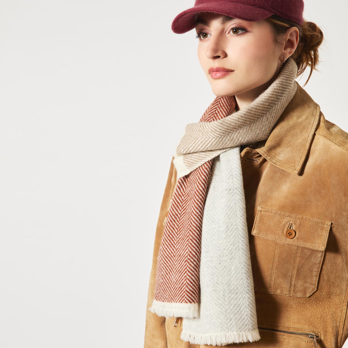 Crafted from 100% cashmere and hand-finished, this herringbone scarf combines classic style and comfort. Soft, warm, and versatile, it's the perfect accessory to complete any look with understated sophistication.