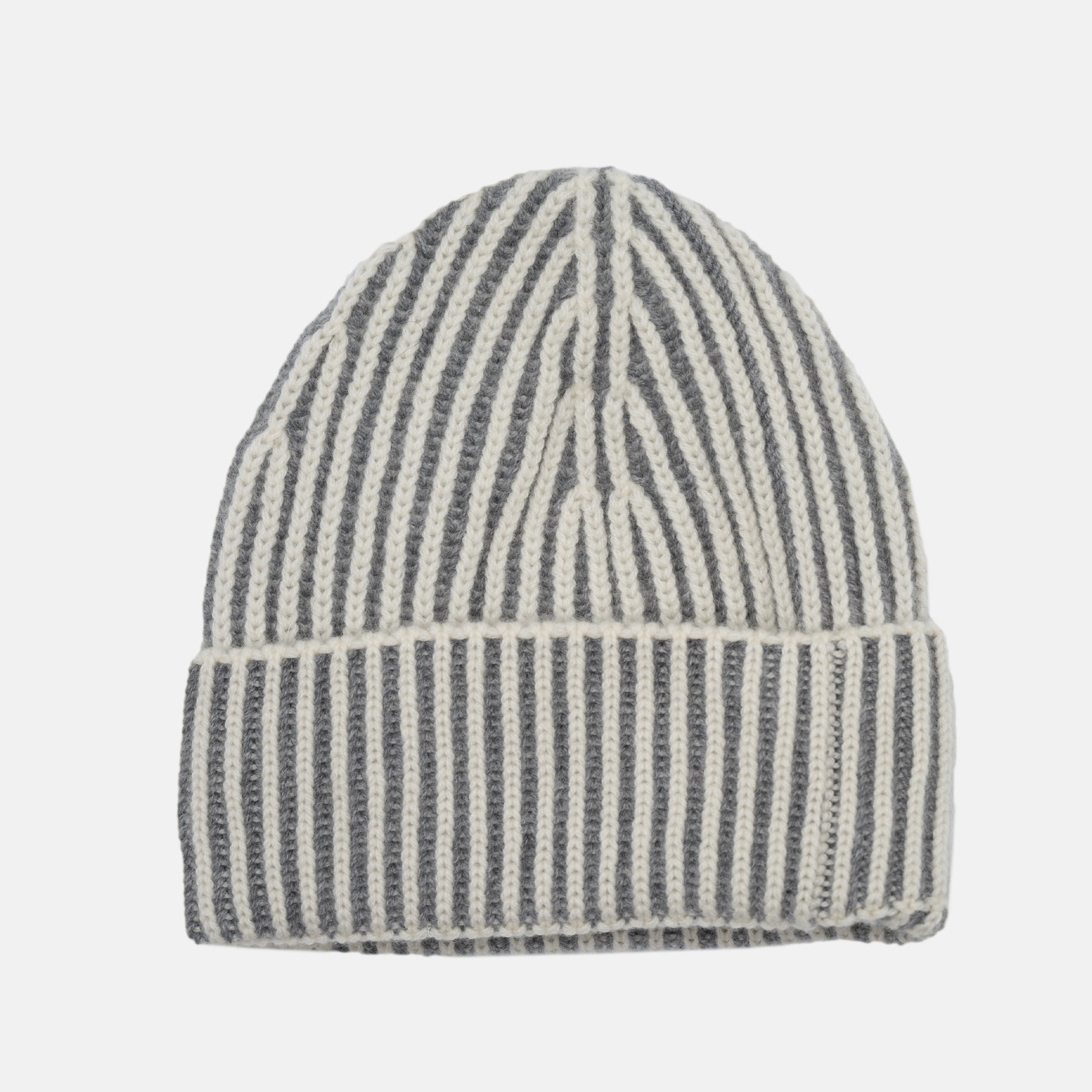 Unisex 100% cashmere ribbed beanie with contrasting raw edge. The quality of the yarn gives this accessory an extraordinary softness, providing a snug feeling and excellent thermal properties.
