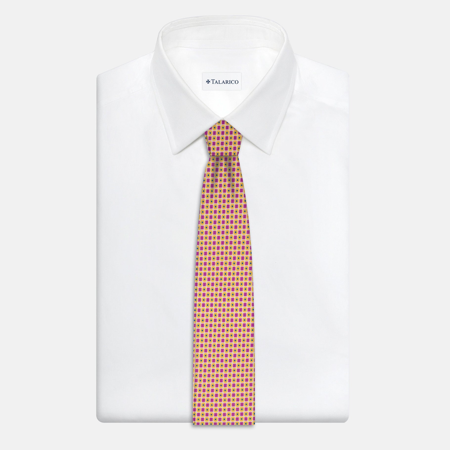 3-Fold Satin Tie with Geometric Pattern, Yellow - JA241005-1
