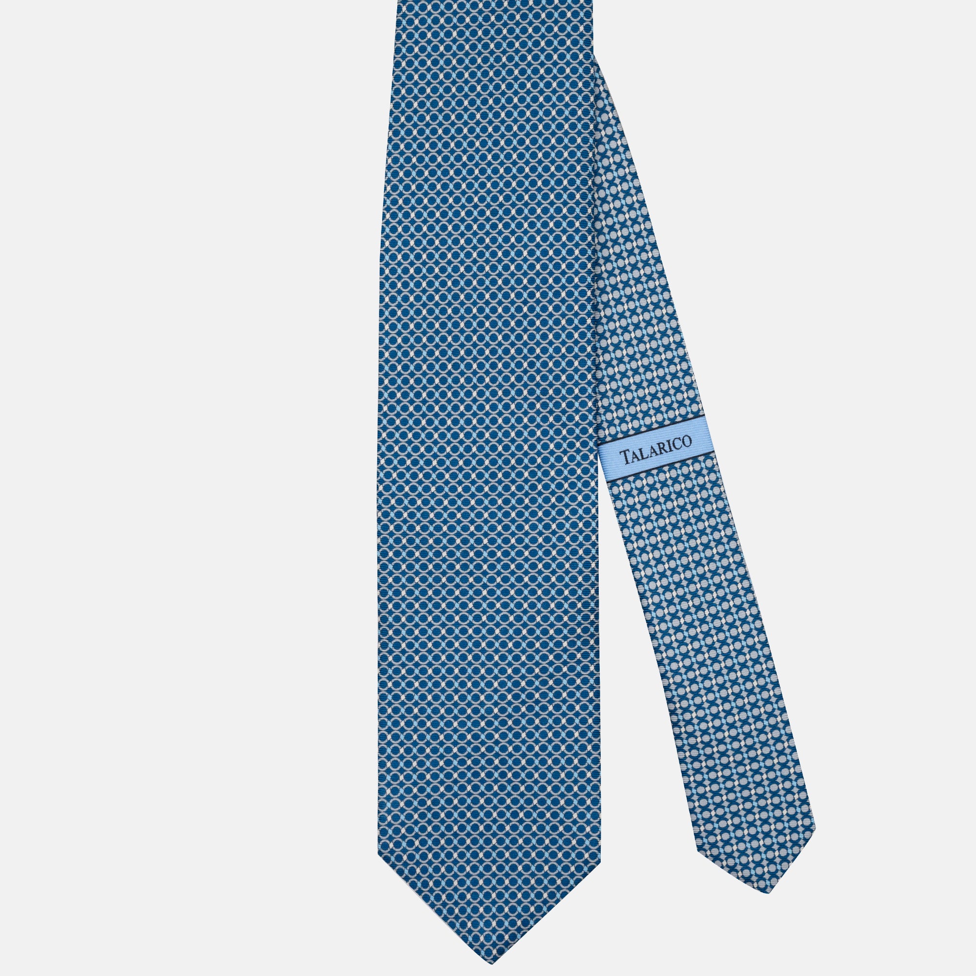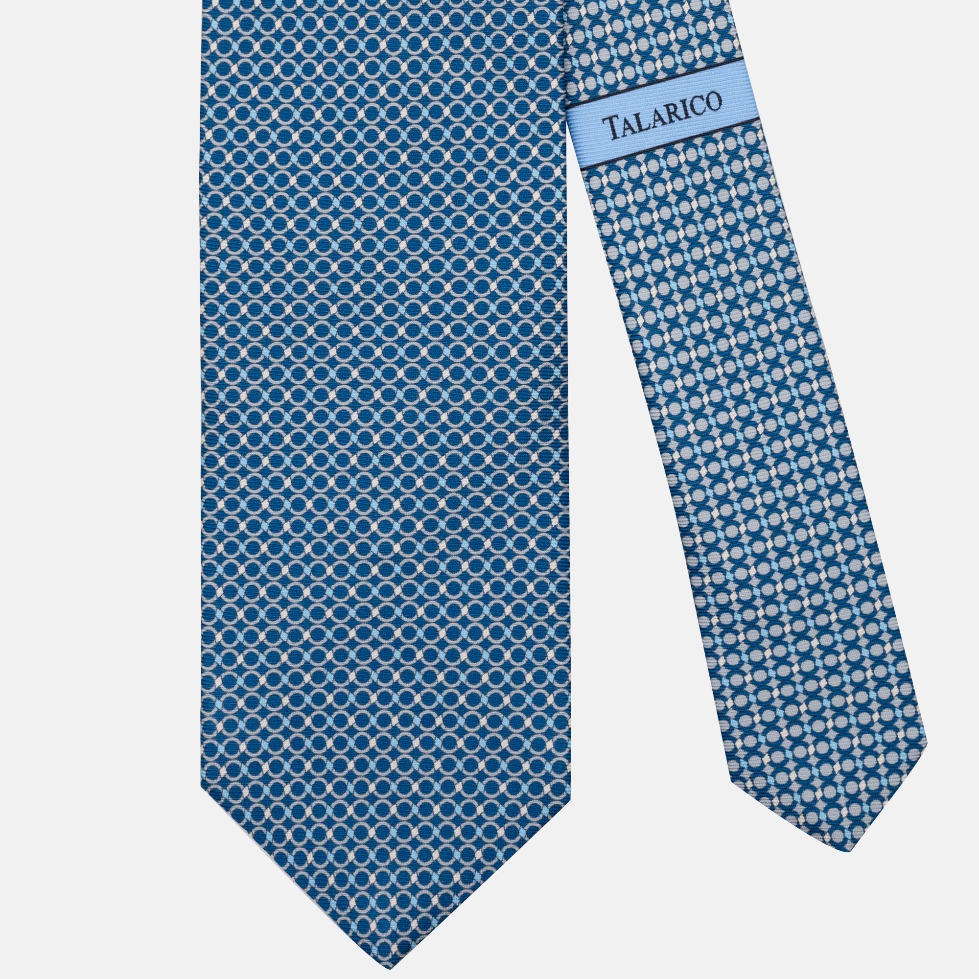 Cravatta 3 pieghe in Seta Fantasia Concatenata Azzurro Grigio - JA303-2