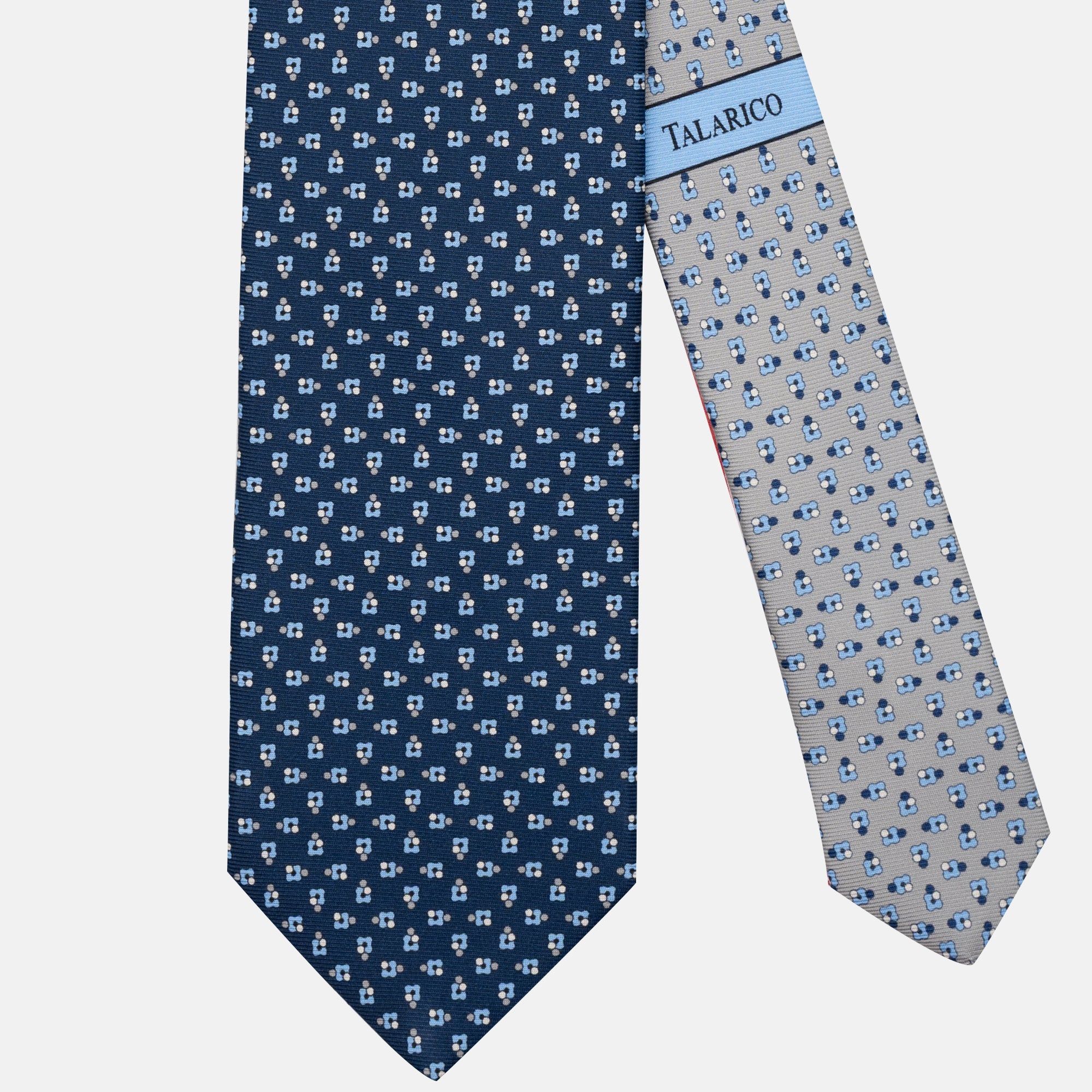Cravatta 3 pieghe in Seta Fantasia Floreale Blu Grigio - JA304-1