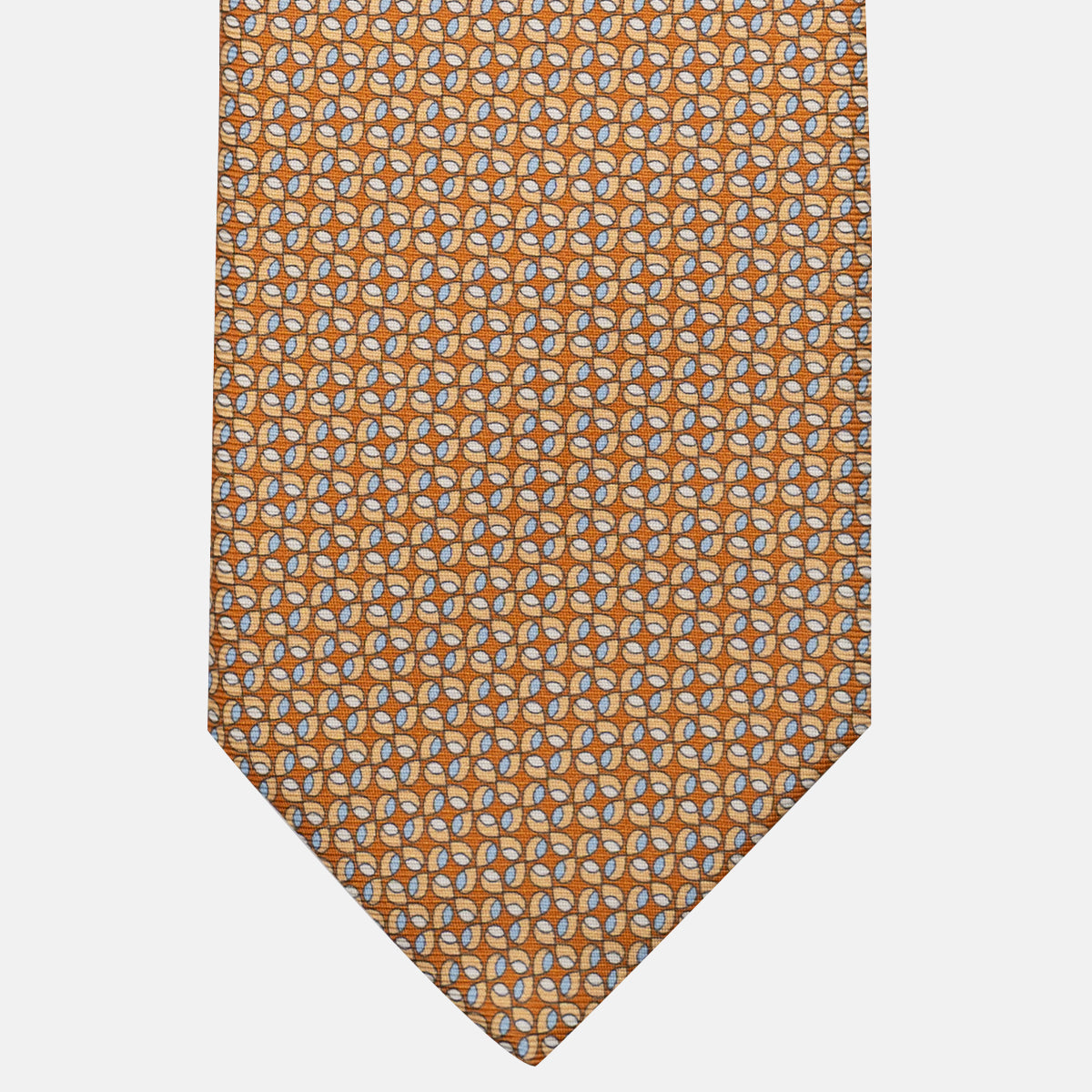 Cravatta 3 pieghe in Seta, Fantasia Geometrica, Arancione Chiaro - JA056132-3