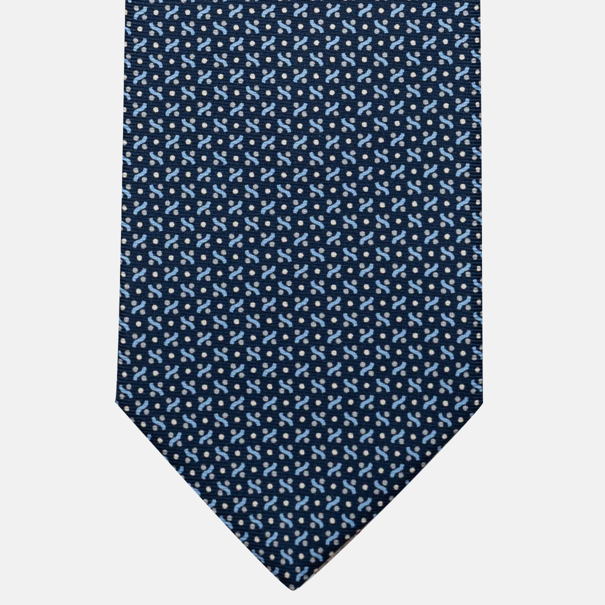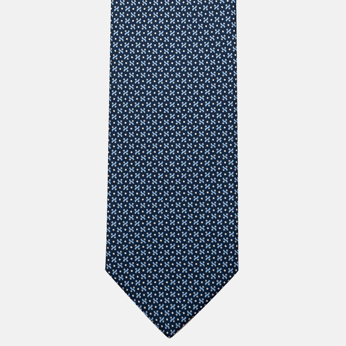 Cravatta 3 pieghe in Seta, Fantasia Geometrica, Blu Grigio - JA056664-8