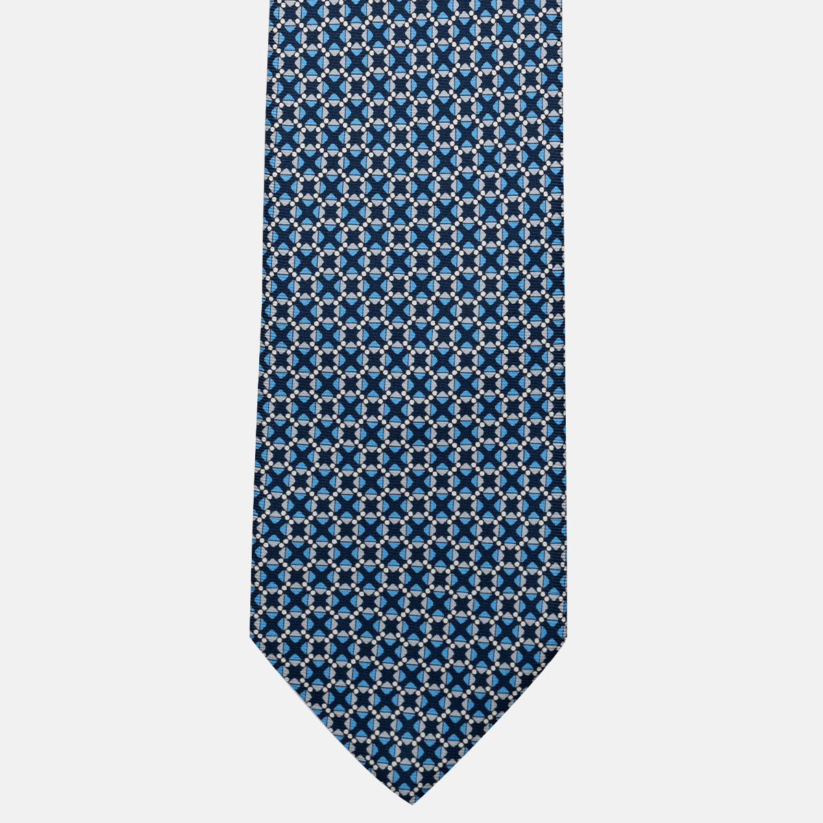 Cravatta 3 pieghe in Seta, Fantasia Geometrica, Blu Grigio - JA055942-1