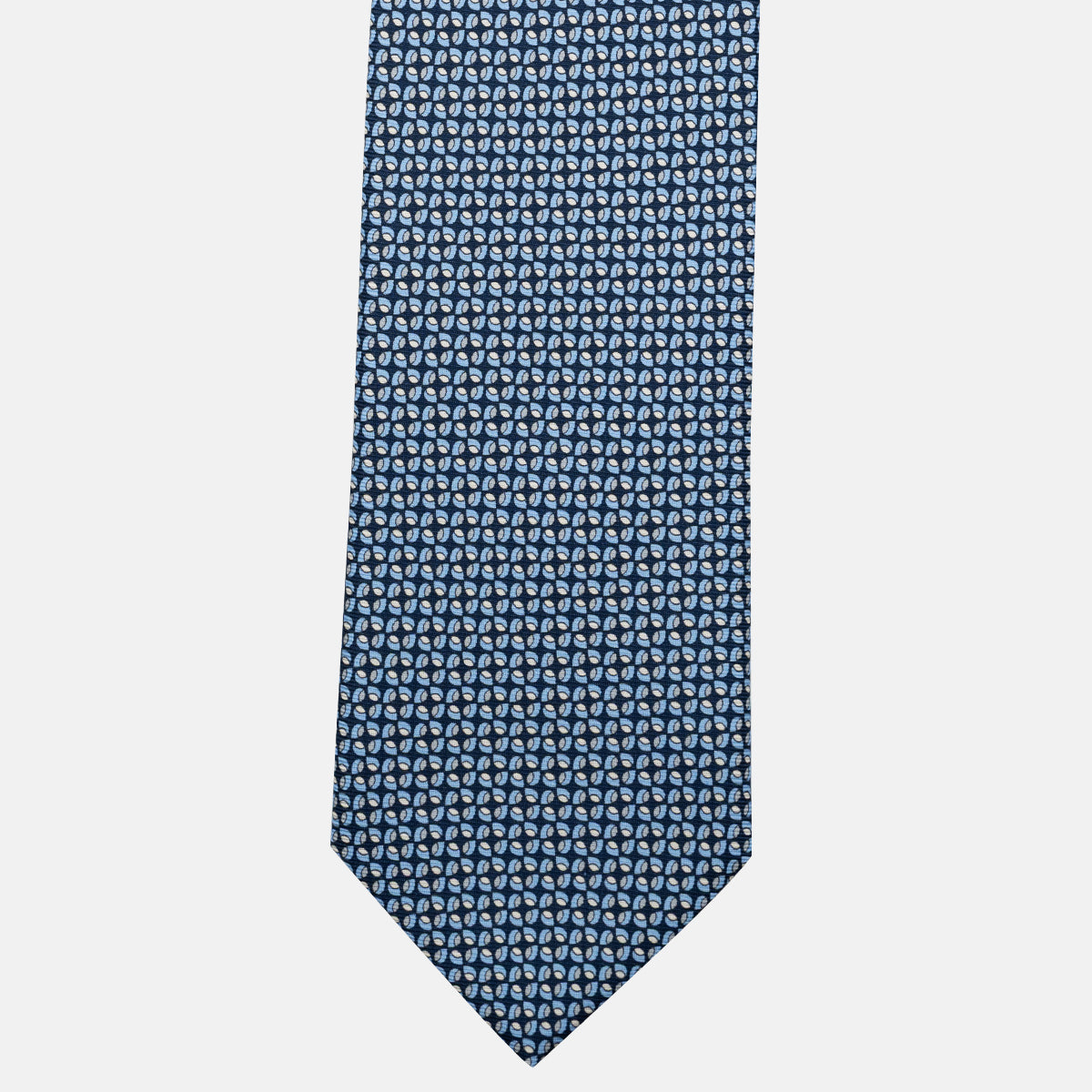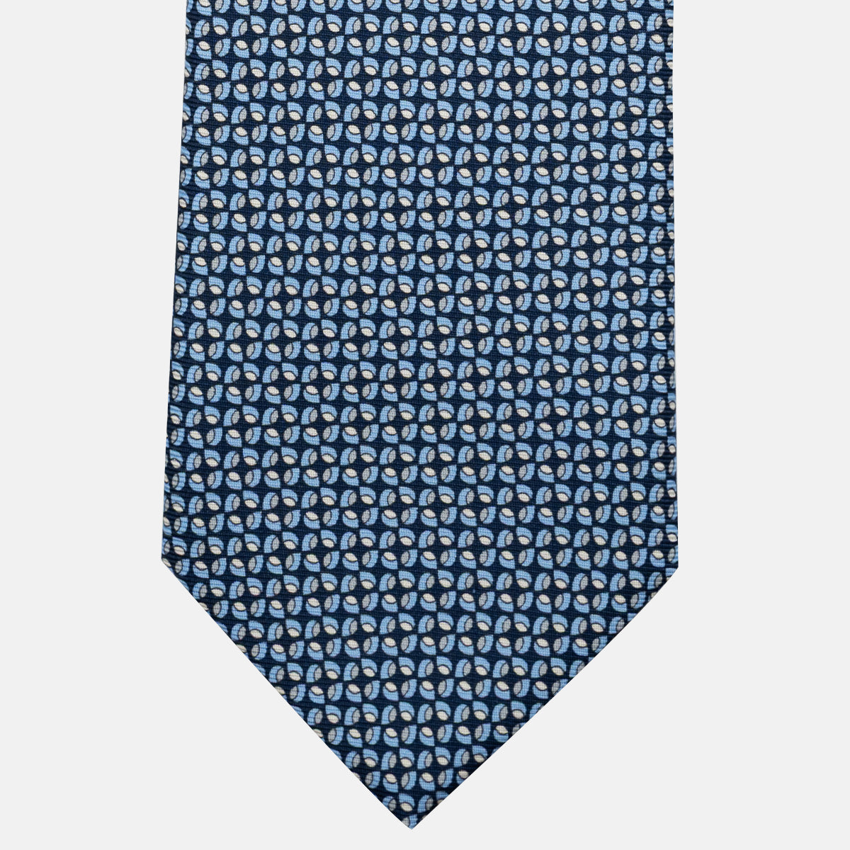 Cravatta 3 pieghe in Seta, Fantasia Geometrica, Blu Grigio - JA056132-9