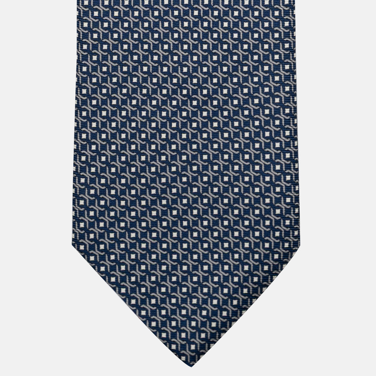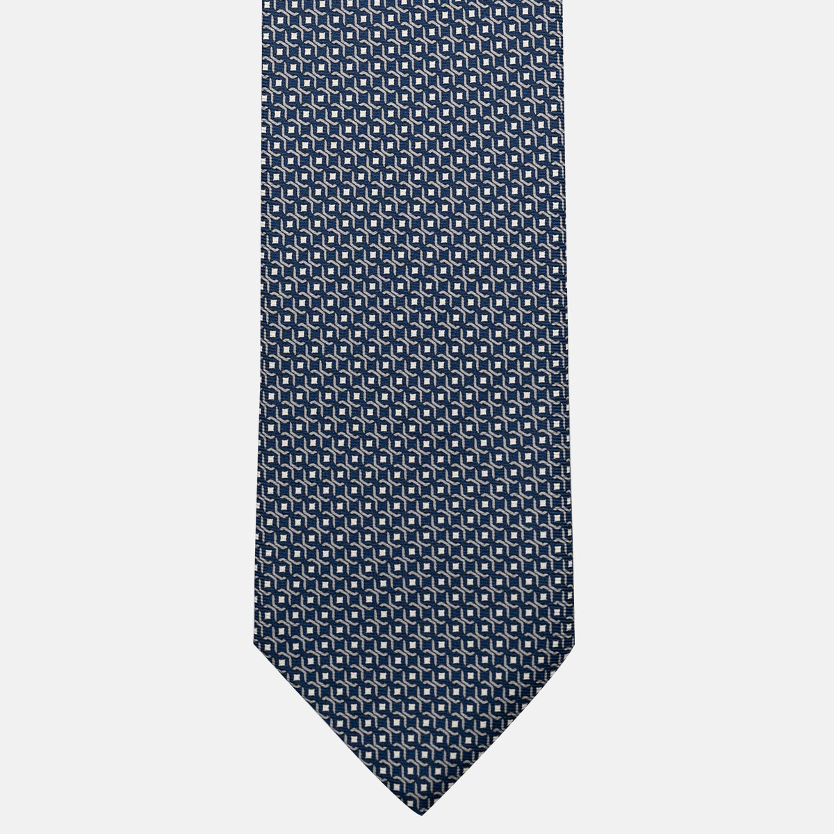Cravatta 3 pieghe in Seta, Fantasia Geometrica, Blu Grigio - JA056341-4