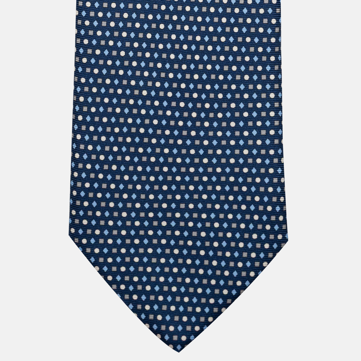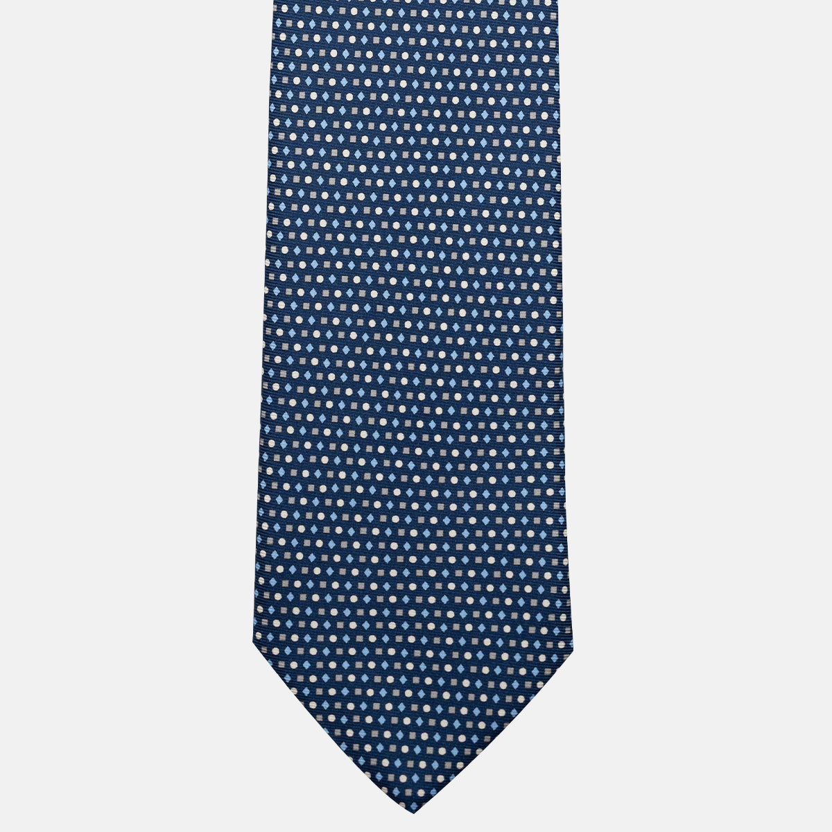 Cravatta 3 pieghe in Seta, Fantasia Geometrica, Blu Grigio - JA056674-8