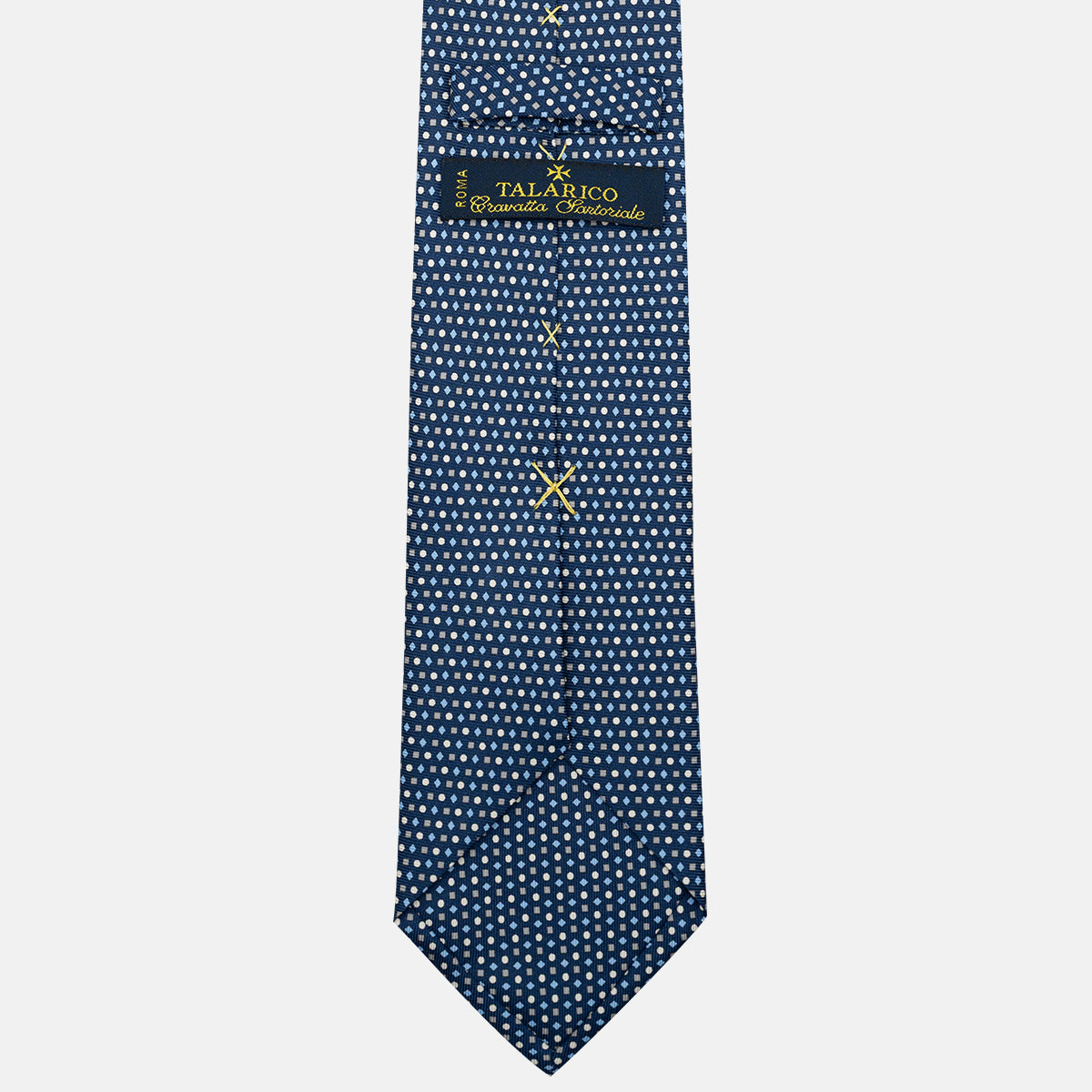 Le cravatte Talarico 3 pieghe sono realizzate in solo 3 esemplari per Variante. Il tessuto è in seta twill 36 once prodotto in Italia.