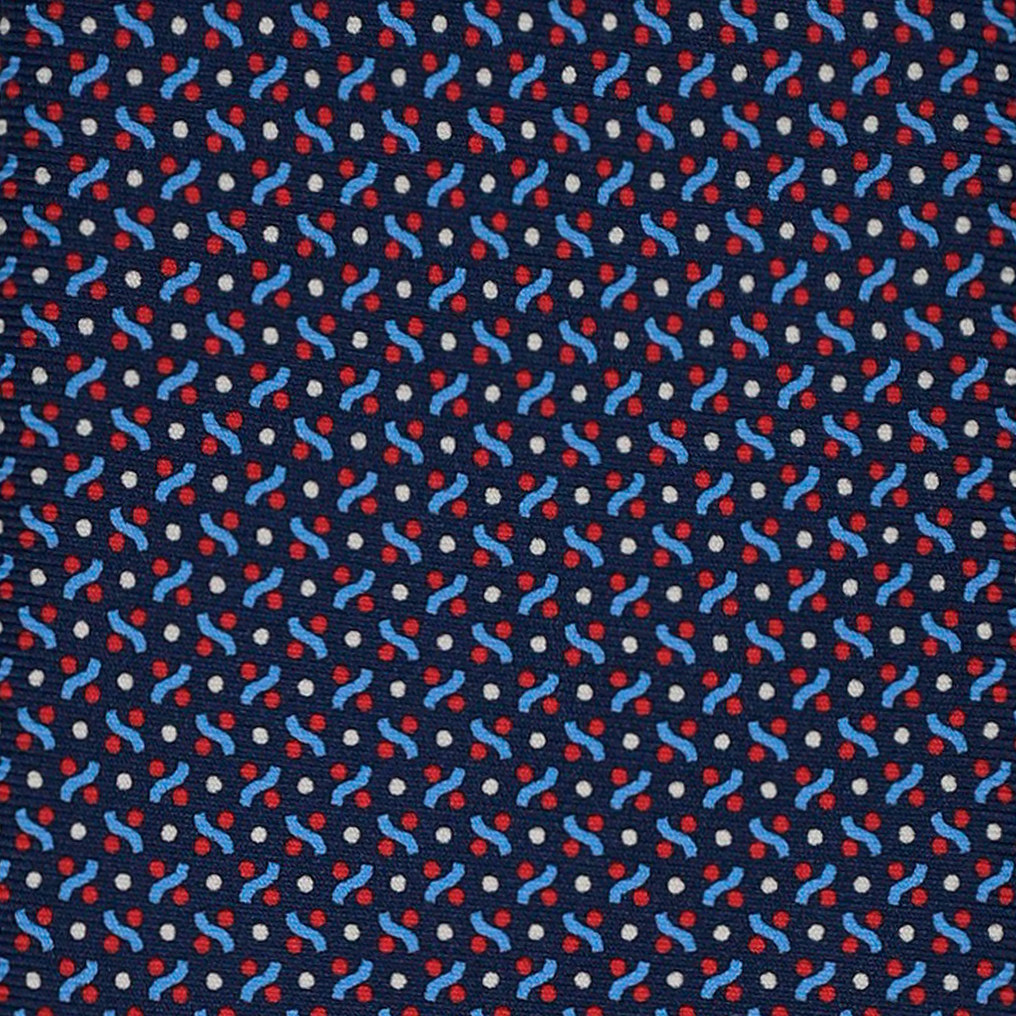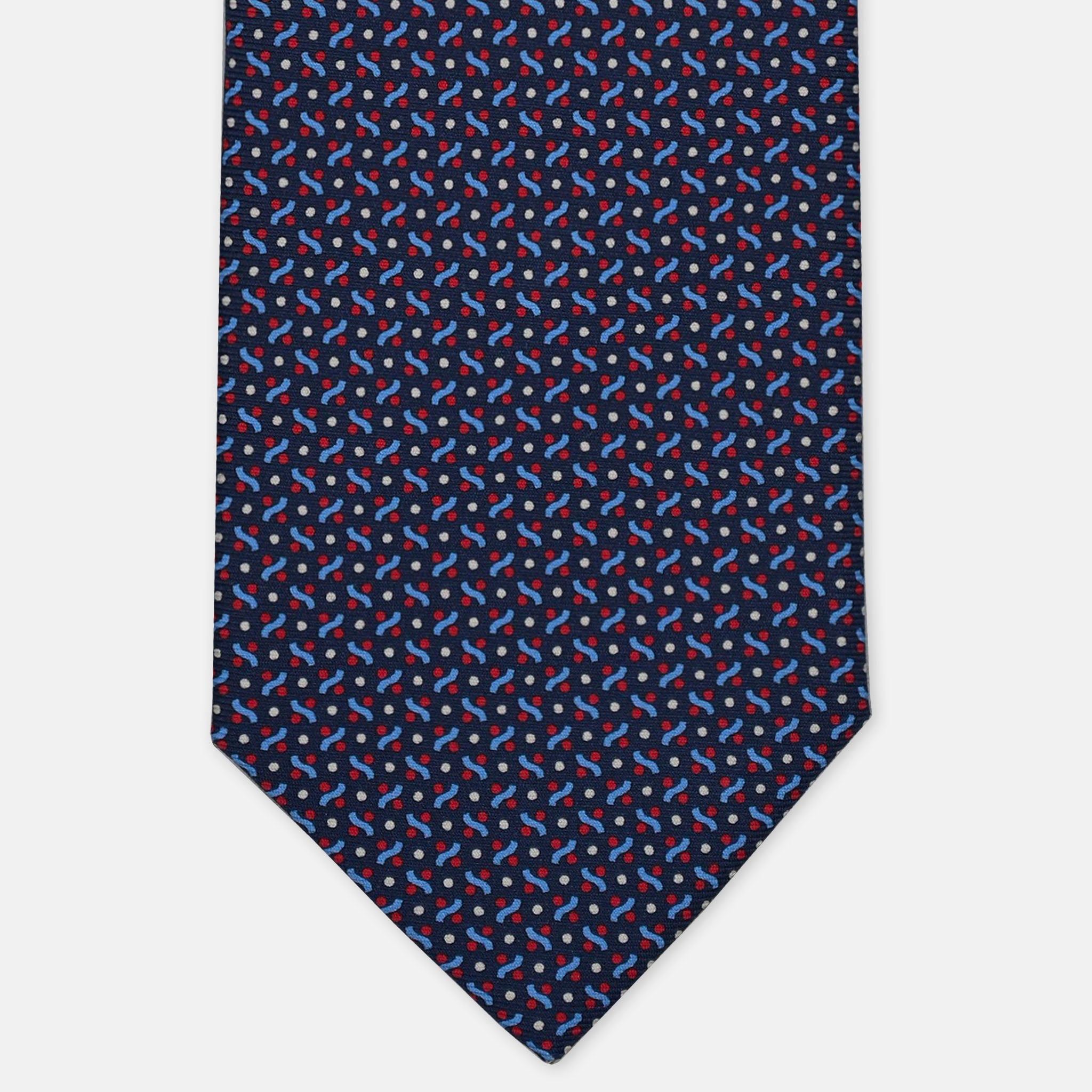 3-Fold Silk Tie, Micro Geometric Pattern, Blue and Red - 3173