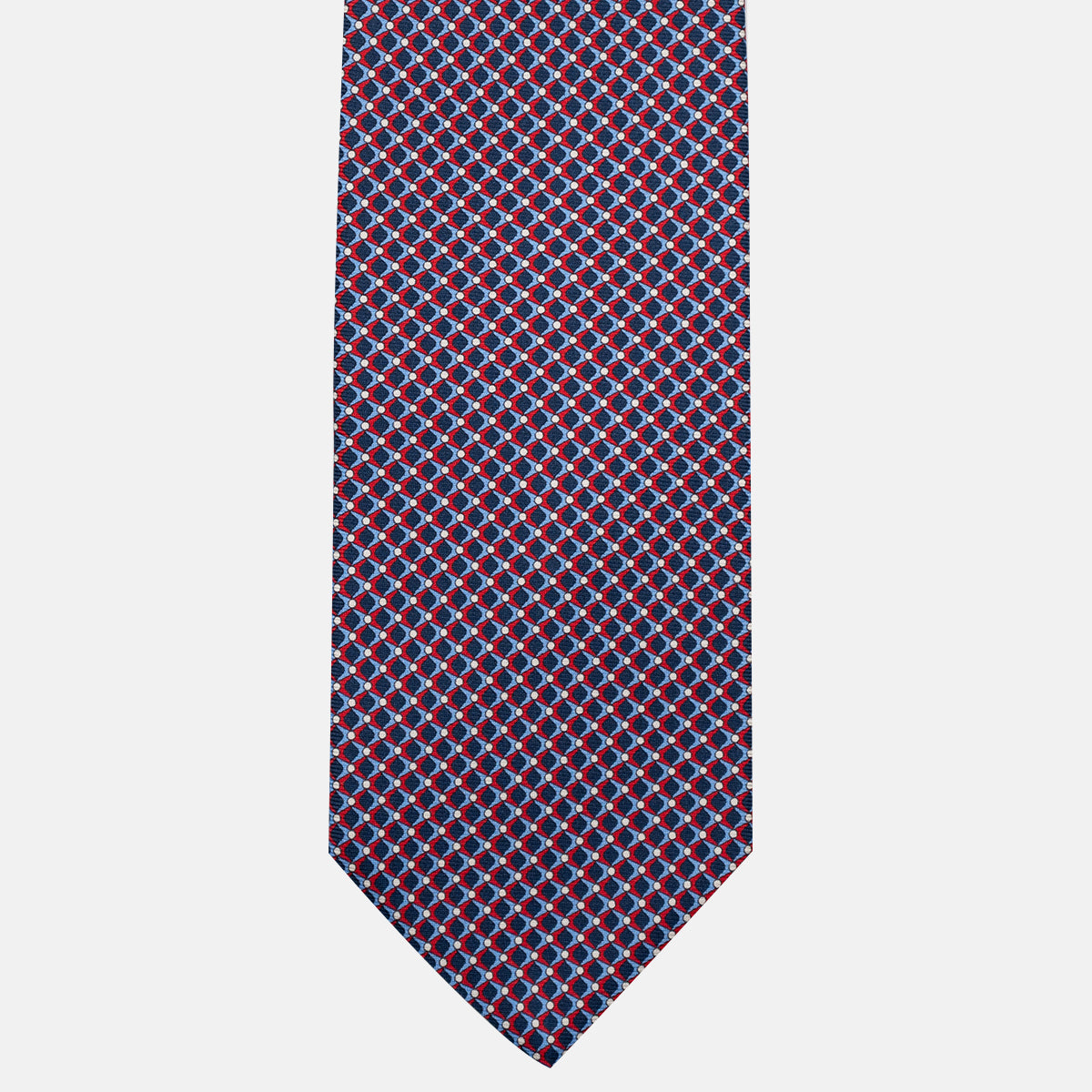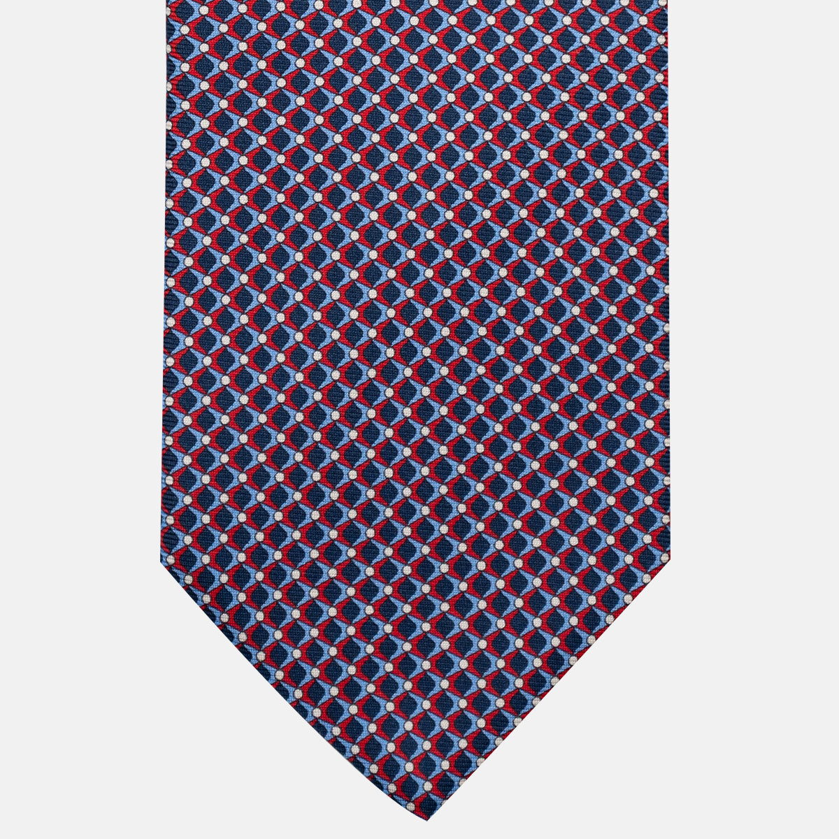 Cravatta 3 pieghe in Seta, Fantasia Geometrica, Blu Rosso - JC056340-2