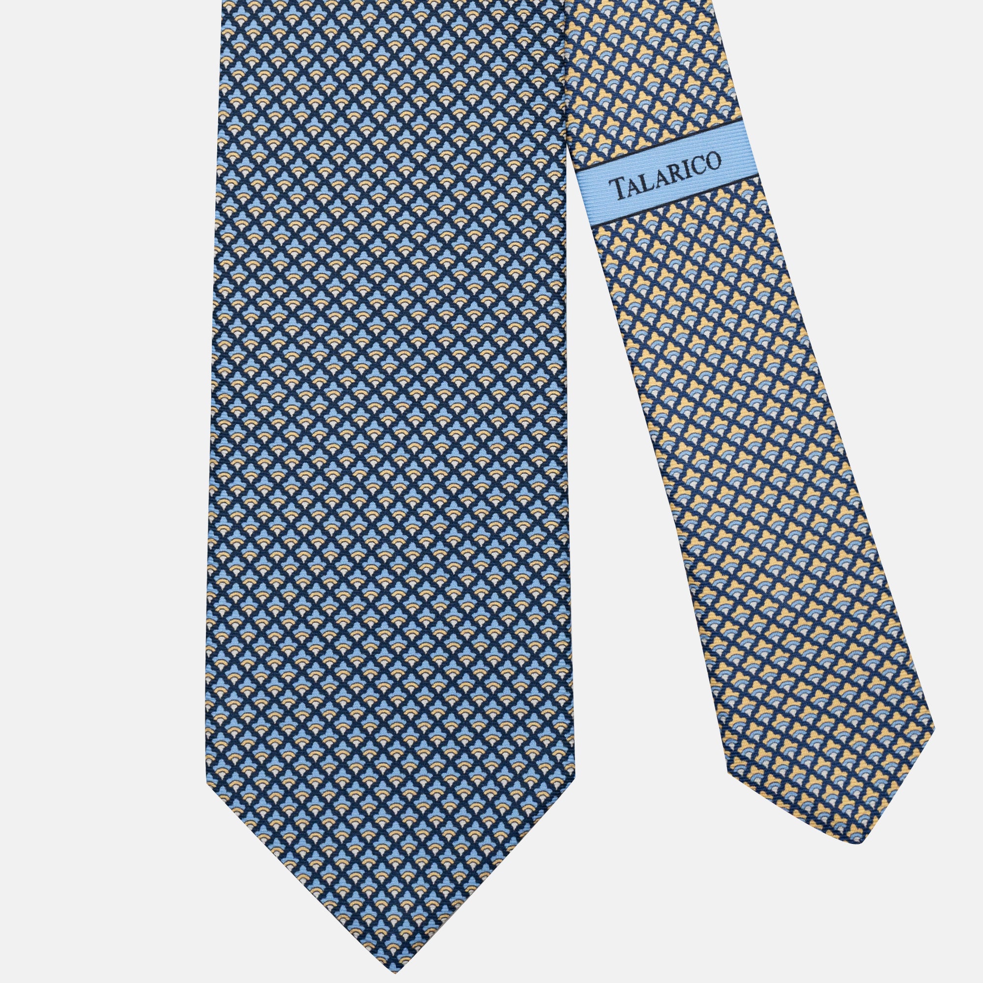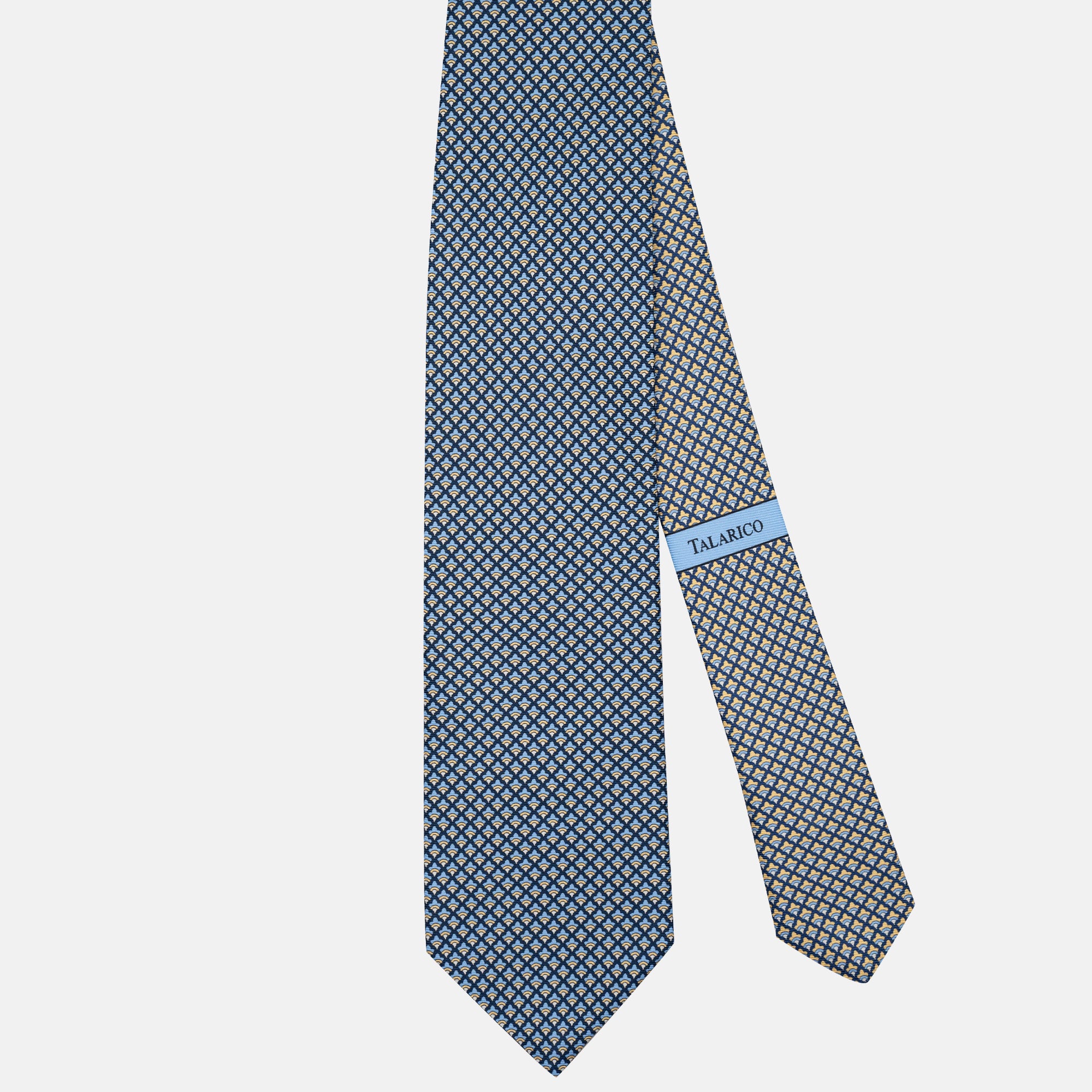 Cravatta 3 pieghe in Seta Micro Fantasia Blu Celeste/Giallo - JA302-4